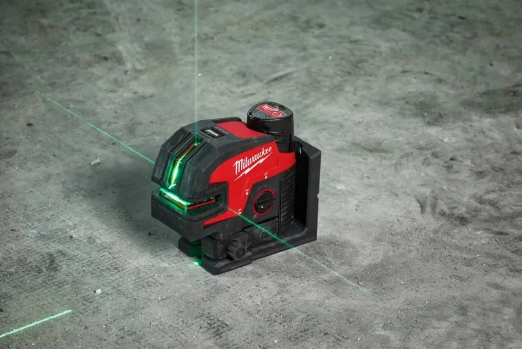 M12™ лінійно-точковий лазерний нівелір із зеленим променем та з 4-ма точками забезпечує універсальну функціональність: горизонтальне та вертикальне вирівнювання, горизонтальне перенесення точок та перенесення точок із підлоги на стелю