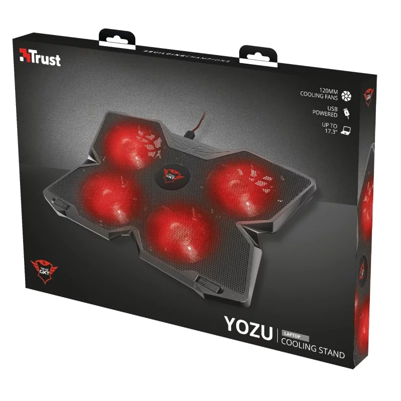 Охолоджуюча підставка Trust GXT 278 захищає ноутбук від перегріву і робить роботу з ним більш комфортною. Вентилятори оснащені червоним підсвічуванням і регулюванням швидкості, аж до повного відключення. Підставка може налаштовуватися по висоті і відмінно підійде для ноутбуків з діагоналлю до 17.3 ".