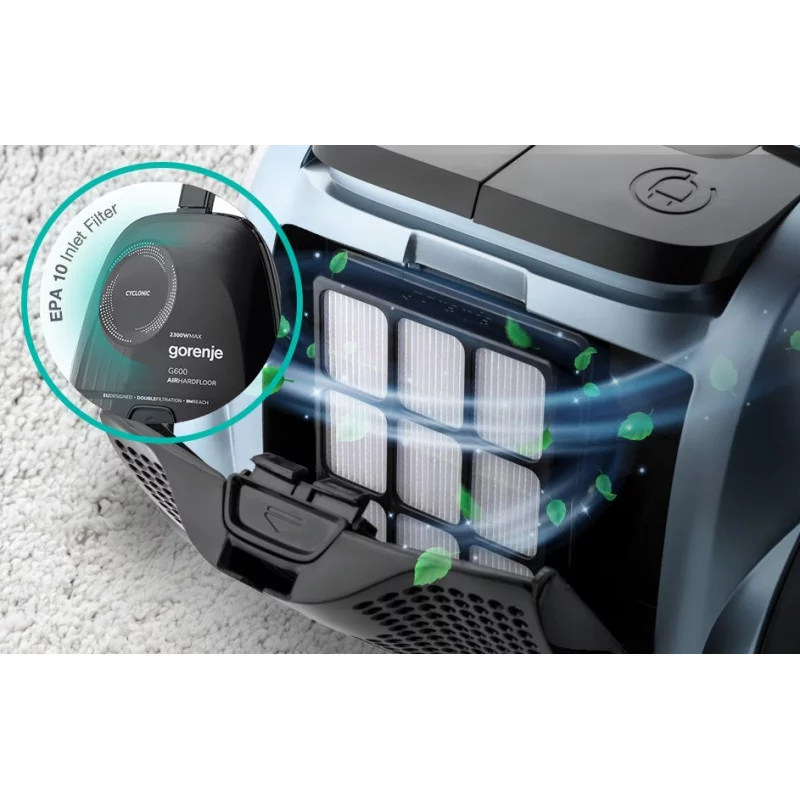 Пилосос AIRHARDFLOOR поєднує високу потужність двигуна 2300 Вт та ефективність всмоктування 350 Вт, що гарантує ретельне прибирання. Завдяки пластиковому контейнеру об’ємом 3,3 л ви зможете легко очищати пилосос без додаткових витрат на мішки. Телескопічна алюмінієва трубка, гнучкий шланг та сенсорне управління забезпечують комфорт у використанні. Захисний бампер, гумові колеса та ергономічна ручка роблять роботу ще зручнішою та безпечнішою.