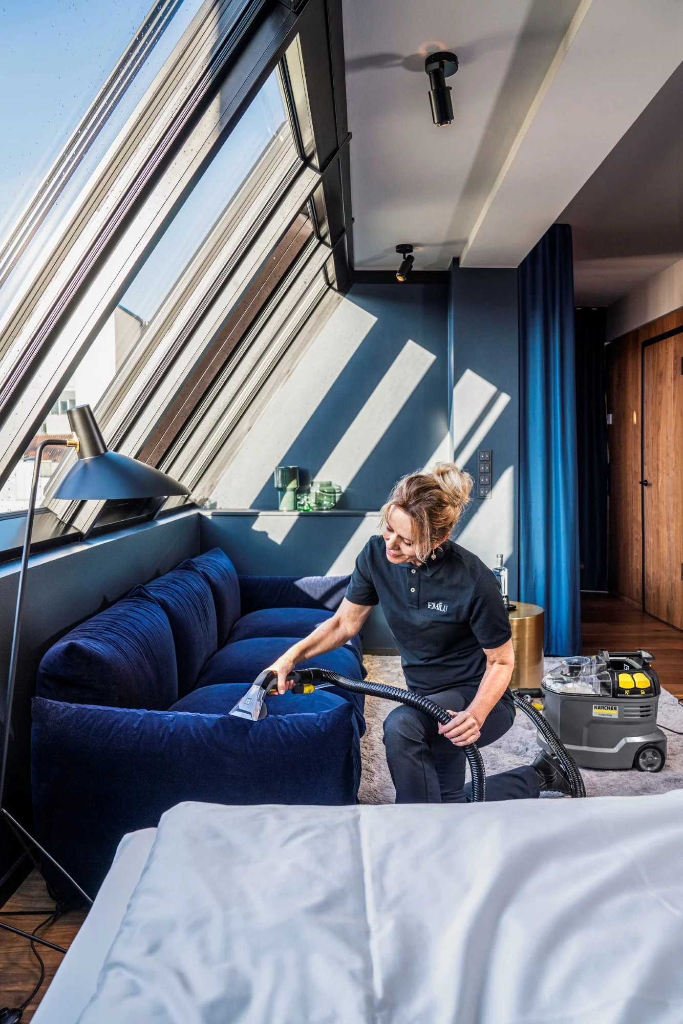 Професійний миючий пилосос Karcher Puzzi 8/1 Adv ефективно очищає килими, меблеву оббивку та інші текстильні поверхні завдяки глибокому розпиленню миючого розчину і швидкому збору вологи. Прозора кришка, насадки та оглядове вікно в рукоятці забезпечують контроль процесу. Легка вага, ергономічна ручка та великі кнопки роблять апарат зручним у використанні. Компактна й міцна конструкція гарантує тривалий термін служби, що особливо цінно для клінінгових компаній, готелів, ресторанів та сервісів з хімчистки автомобілів.