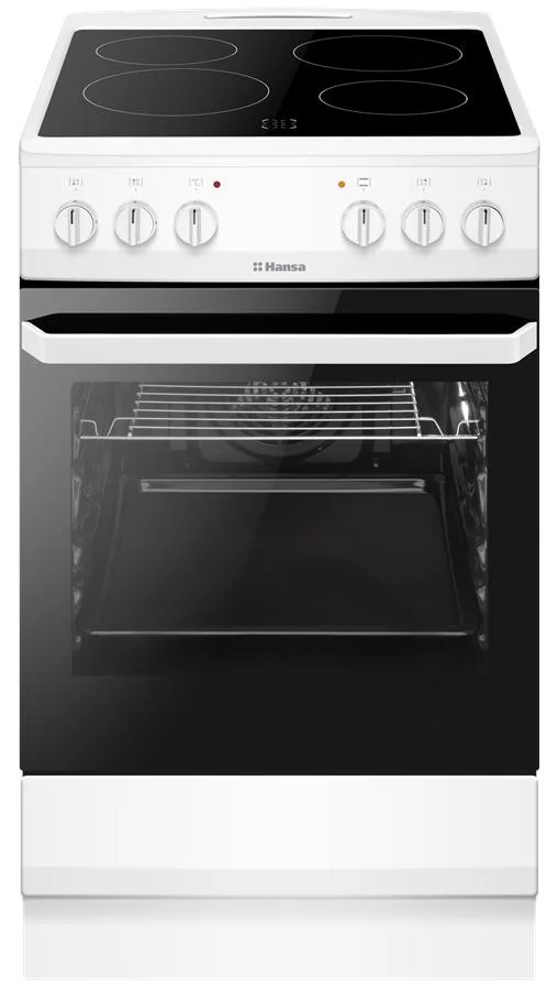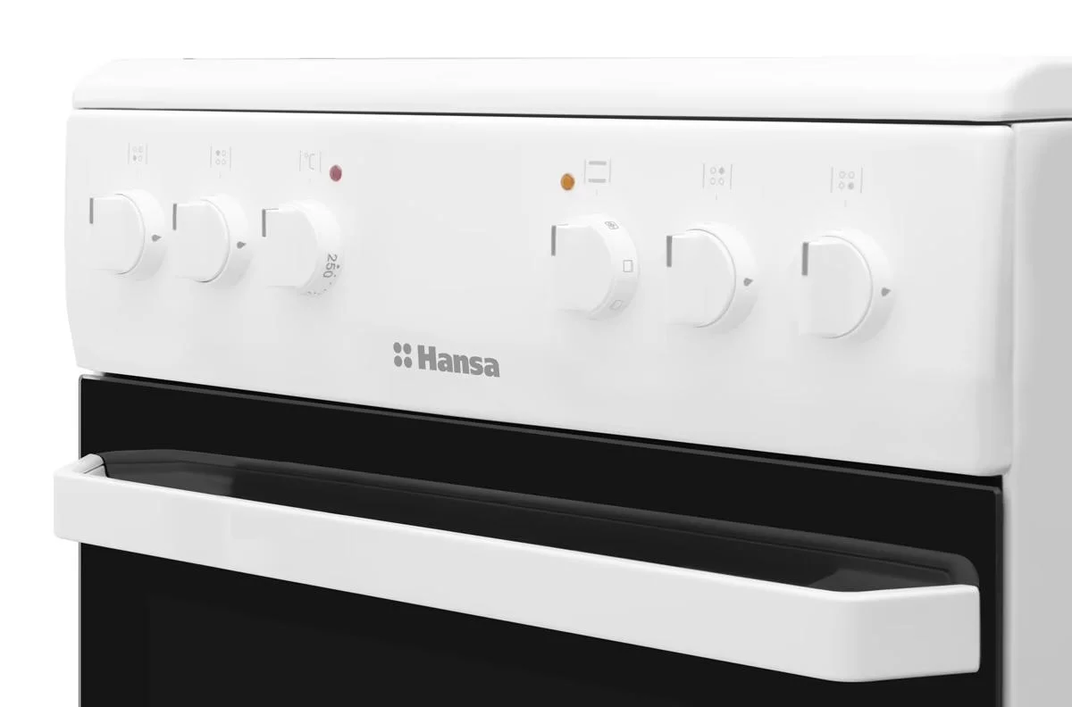 Електрична плита Hansa FCCW56069 має простору духовку об’ємом 62 л і чотири конфорки на склокерамічній поверхні. Шість режимів нагрівання дозволяють готувати з нижнім або верхнім нагрівом, у поєднанні з вентилятором чи в режимі розморожування. Максимальна температура досягає 250 °C, що робить плиту зручною для запікання, випікання та тушкування.
