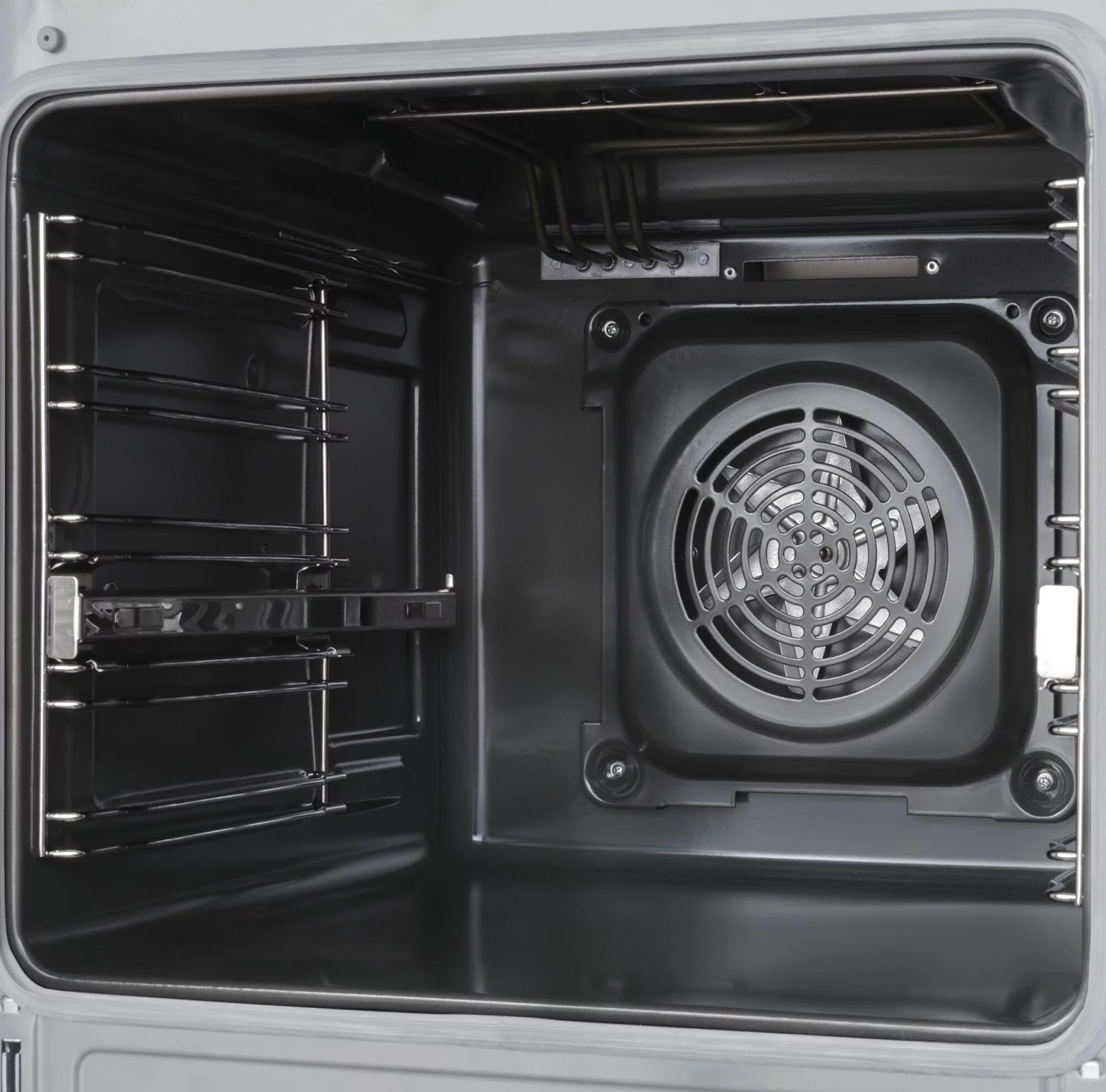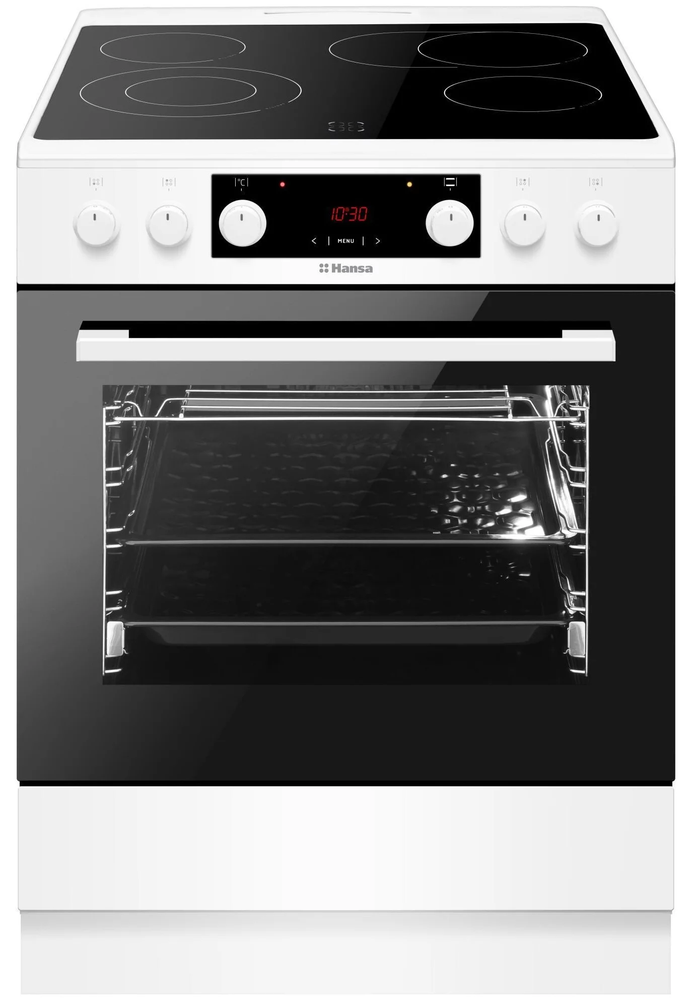 Електрична плита Hansa FCCW69493 оснащена духовкою об’ємом 65 л з 10 режимами приготування, включаючи гриль, конвекцію та функцію піци. Склокерамічна варильна поверхня має 4 зони HiLight, індикатор залишкового тепла та зручне сенсорне керування з дисплеєм. Система парового очищення спрощує догляд, а стильний білий дизайн доповнює інтер’єр кухні.
