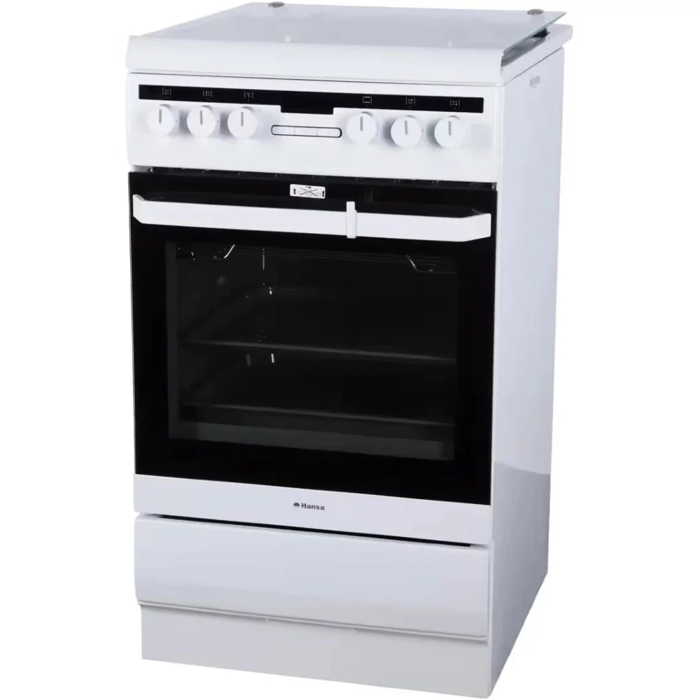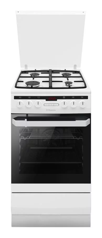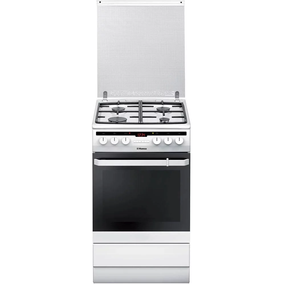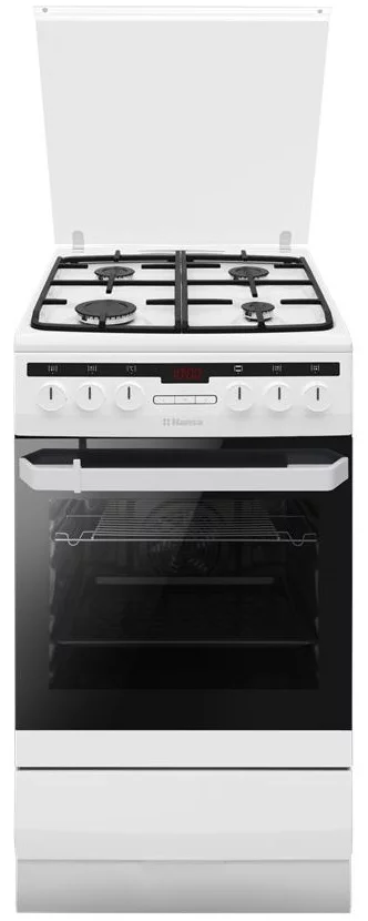 Комбінована плита з газовою варильною поверхнею та електричною духовкою об’ємом 62 л. Має 8 програм приготування, включаючи гриль, конвекцію та швидкий розігрів. Варильна поверхня обладнана чавунними решітками і електрозапалюванням у ручках.