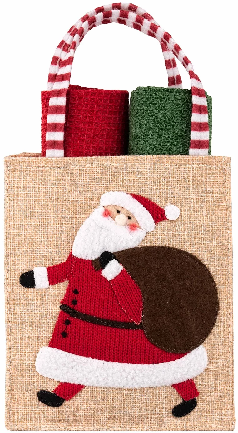 Стильний набір ARDESTO Christmas Santa поєднує практичність і сучасний дизайн. У наборі два рушнички для кухні зеленого та червоного кольорів розміром 38 × 63 см. Вироби виготовлено з 100 % бавовни, завдяки чому вони добре поглинають вологу. Мішечок із 100 % поліестеру, який оздоблено симпатичним зображенням Санти, гарно тримає форму. Дизайн набору додає настрою і створює атмосферу свята. Для збереження первинного вигляду рушничків варто дотримуватися рекомендацій щодо догляду: прати в машині за делікатного режиму (30 °C); сушити в машині за низької температури; прасувати за температури до 110 °C; не відбілювати, хімчистку заборонено. Цей набір буде вдалим подарунком для близьких і друзів.