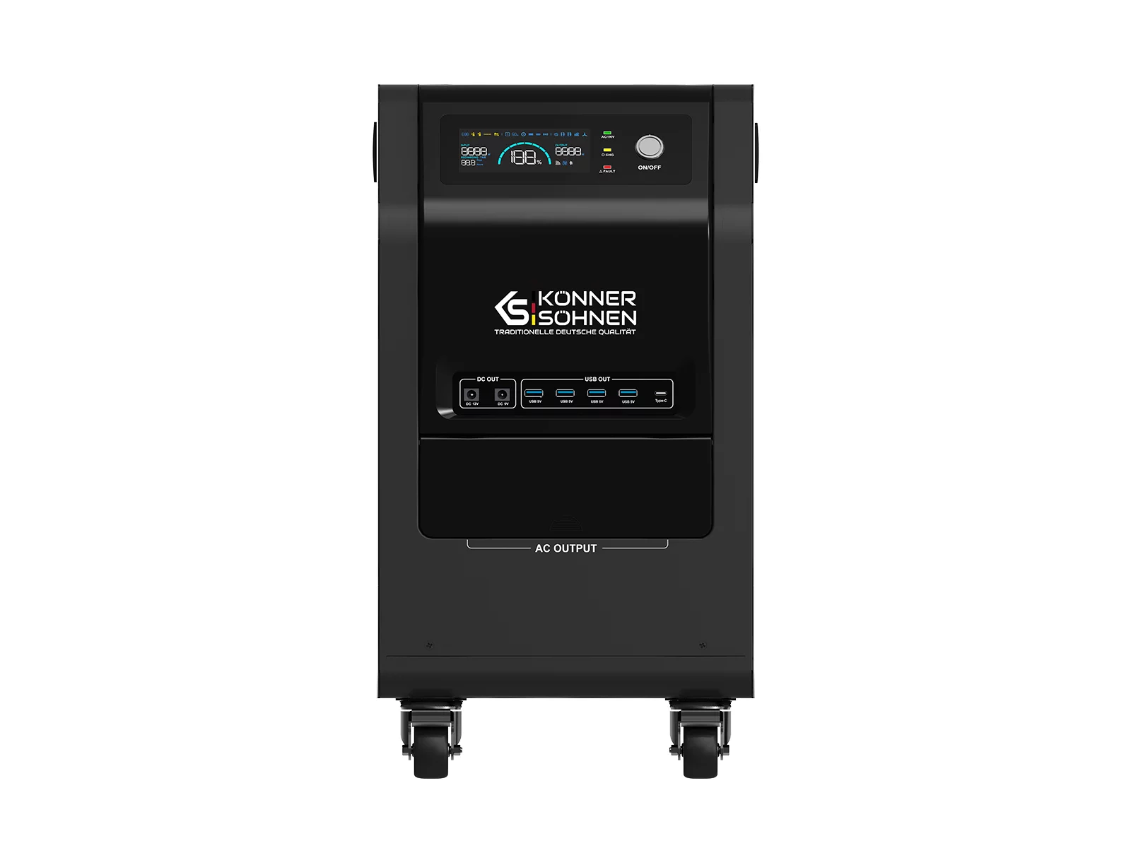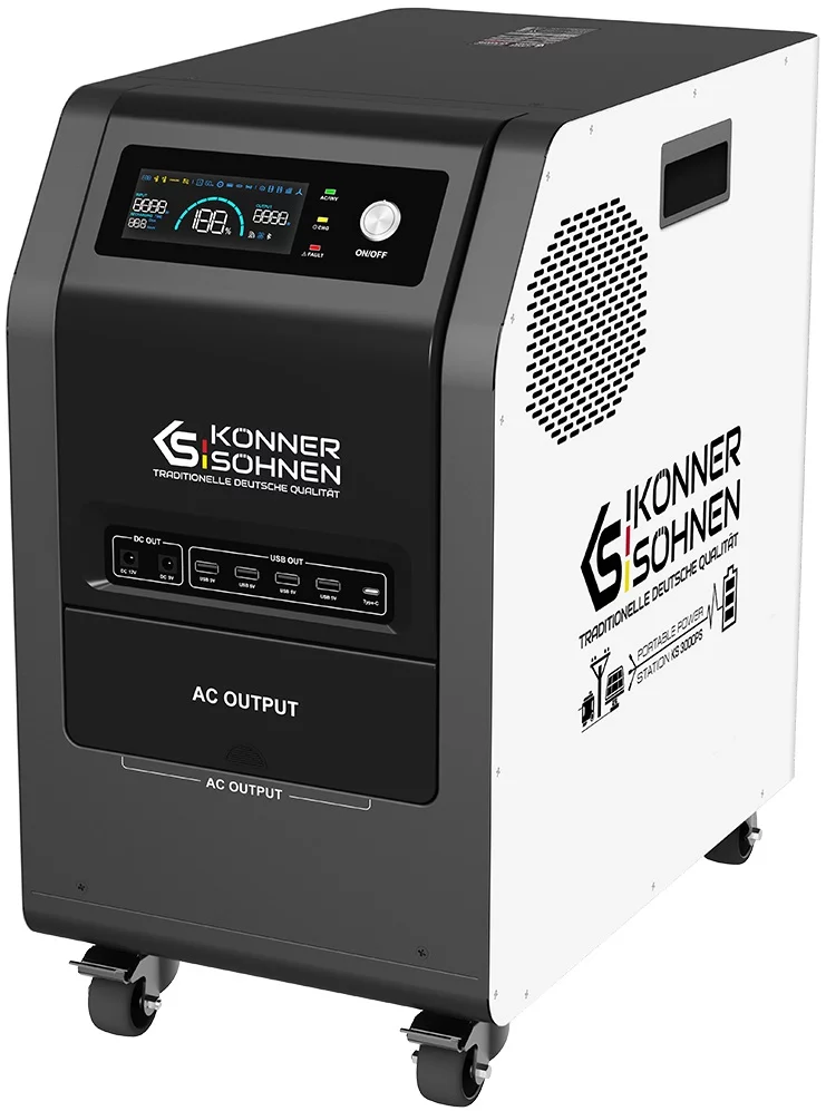 Портативна електростанція KS 3000PS від Konner & Sohnen - це екологічне та ефективне джерело енергії потужністю 3000 Вт і ємністю 3200 Вт·год. Оснащена надійним акумулятором LifePo4, станція забезпечує стабільну роботу з чистою синусоїдою вихідної напруги. Заряджати можна трьома способами: від мережі, сонячних панелей або генератора, що дозволяє зберігати енергію з різних джерел.