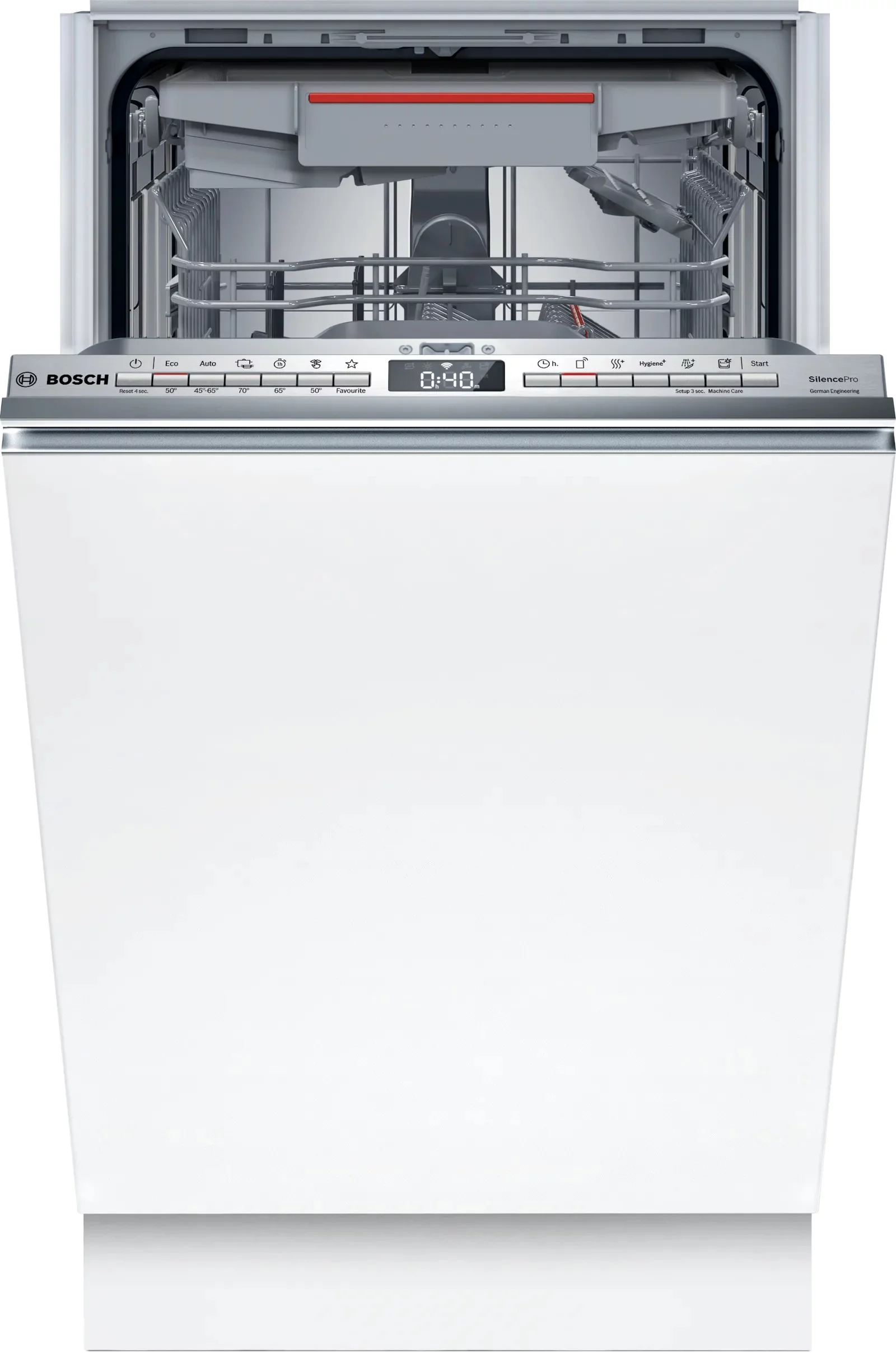 Вбудована посудомийна машина Bosch на 10 комплектів, з низьким рівнем шуму 45 дБ та економною витратою води 6,7 л у програмі Eco 50°C. Оснащена технологіями ExtraDry, Home Connect, RackMatic™, системою захисту скла GlassProtec, двигуном EcoSilence Drive та сенсорами AquaSensor і AquaStop. Забезпечує бездоганну якість миття та сушіння, має 4 температурні режими, самоочисну систему фільтрації та зручне керування зі смартфона.