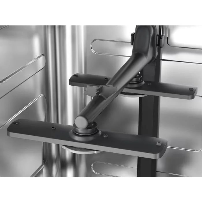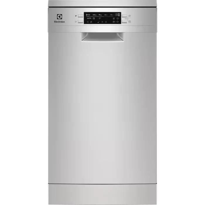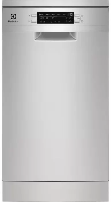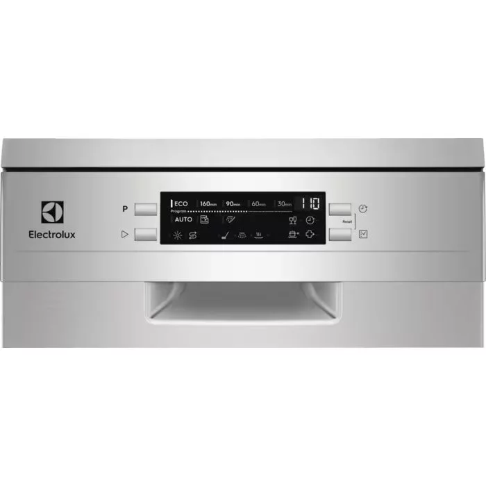 Посудомийна машина Electrolux ESS64321SX з розпилювачем SatelliteClean® забезпечує ретельне миття навіть щільно розставленого посуду. Висувний ящик MaxiFlex вміщує прибори різної форми, а SoftSpike утримує тонке скло. ExtraHygiene додає санітарне полоскання при 69 °C, а AirDry наприкінці циклу відкриває дверцята для природного сушіння. Зручність доповнюють сенсор води та інверторний двигун.