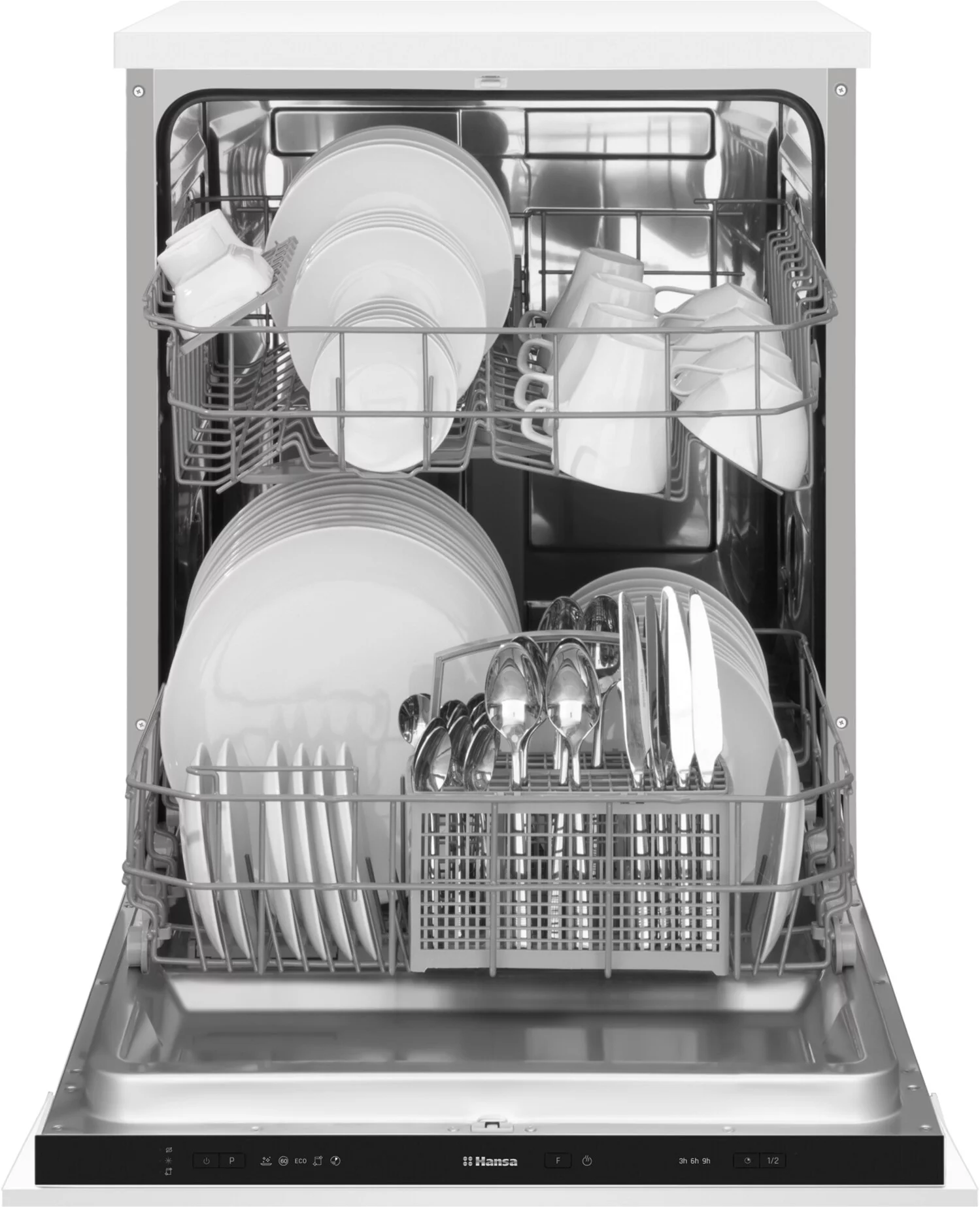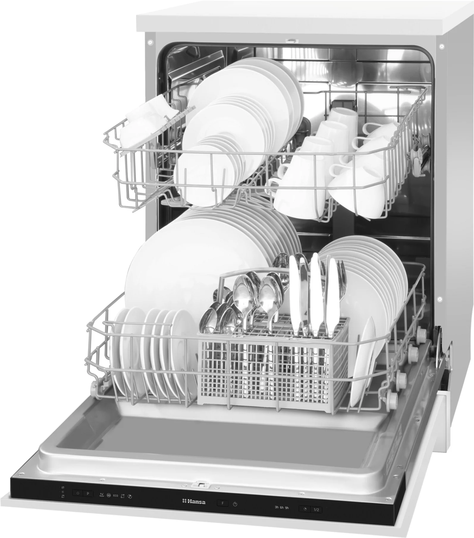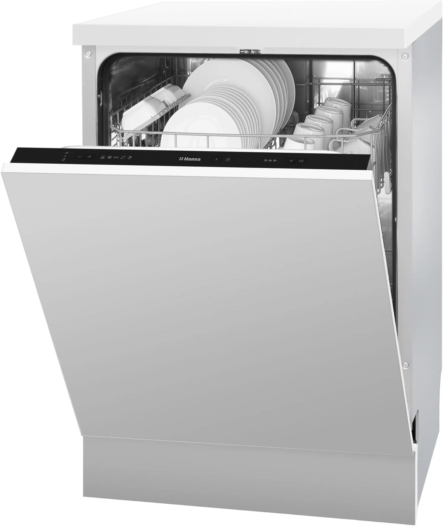 Вбудована посудомийна машина Hansa ZIM635PH на 12 комплектів має 5 програм, функції половинного завантаження, відкладеного старту та додаткового сушіння. Рівень шуму 49 дБ, споживання води лише 11 л за цикл. Клас енергоефективності A++ забезпечує ощадливе використання ресурсів.