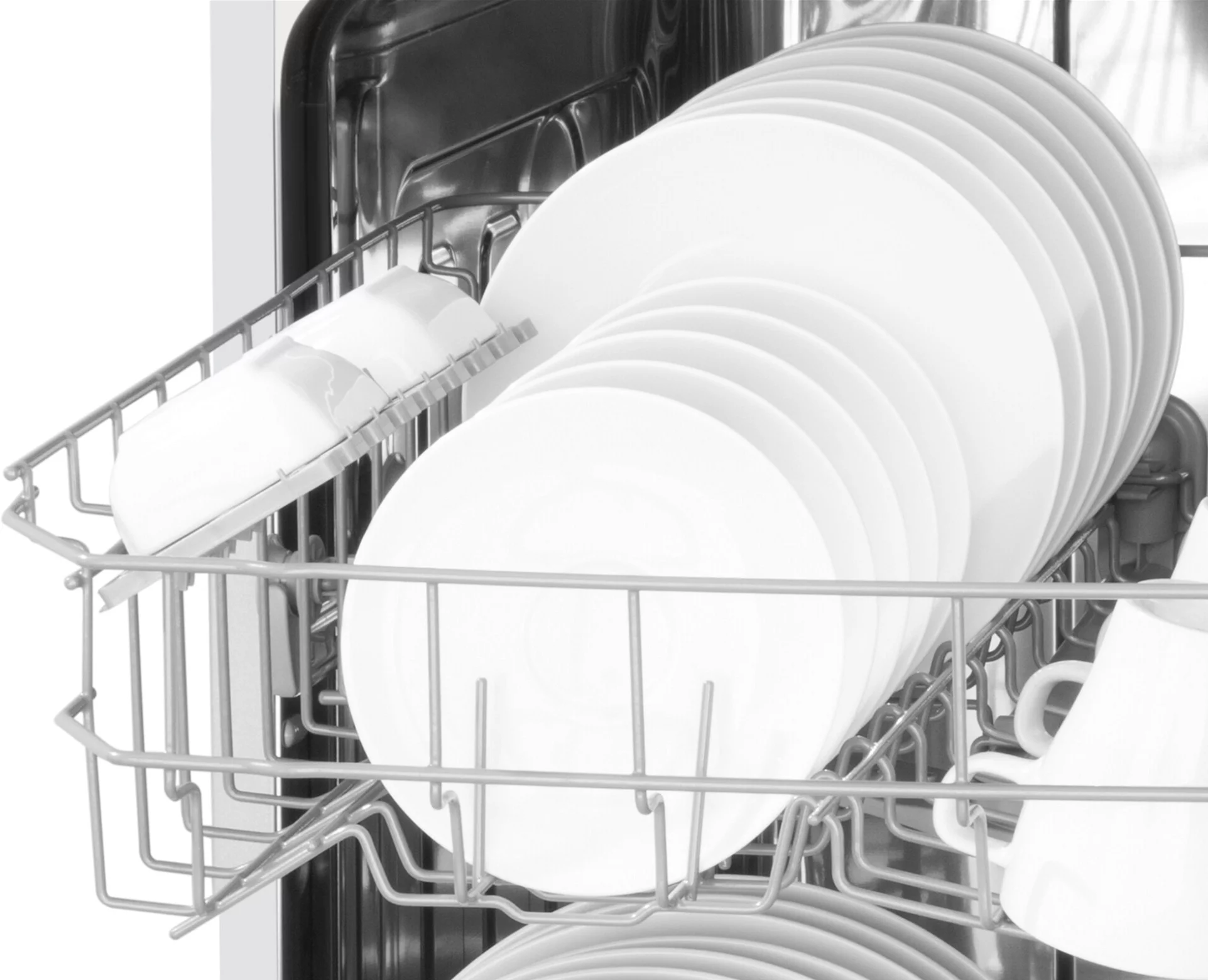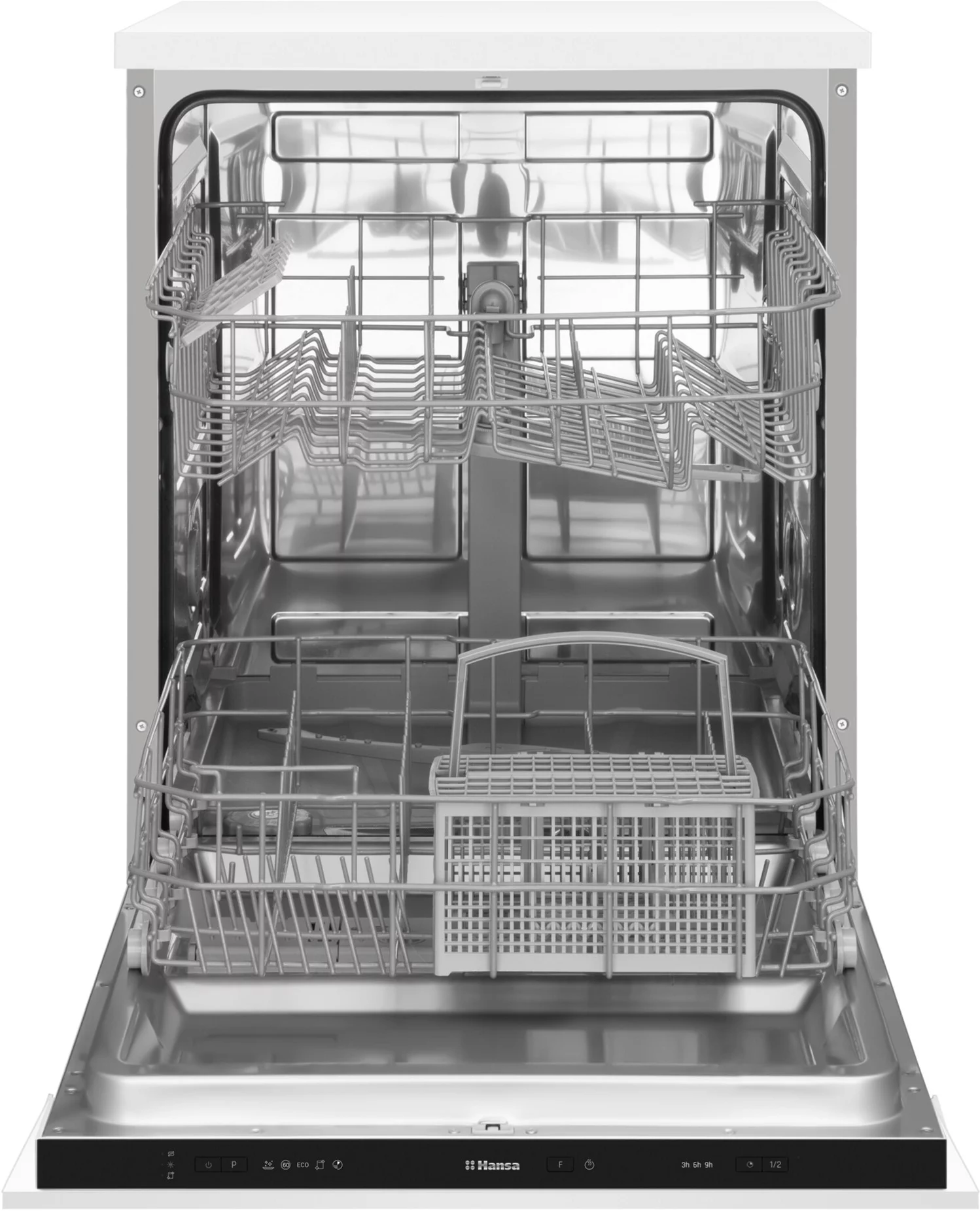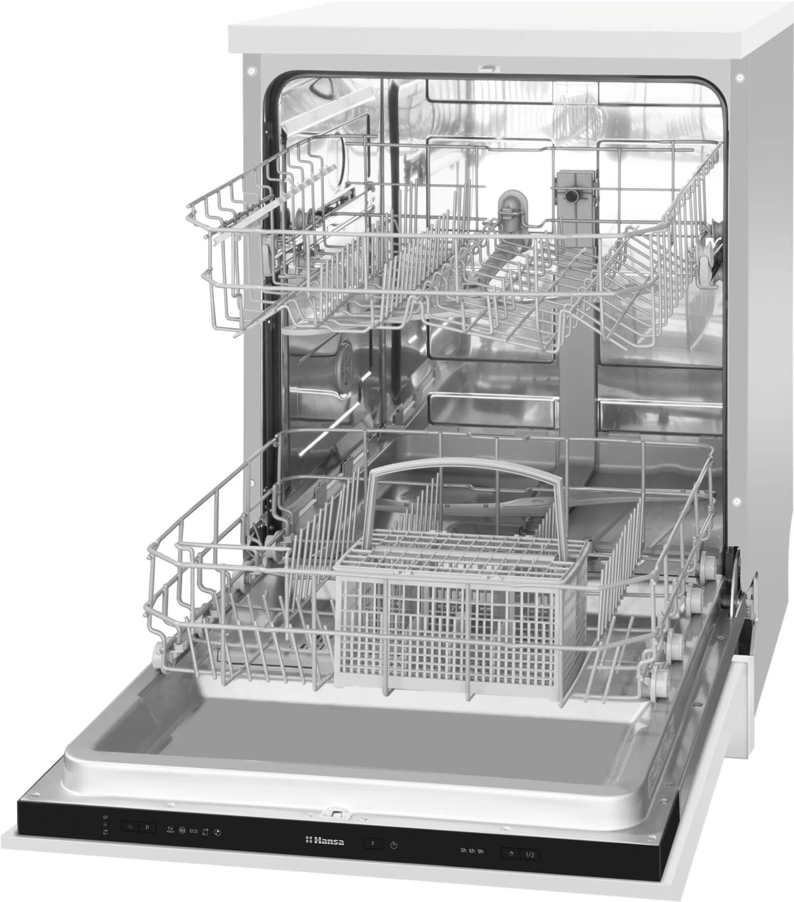 Вбудована посудомийна машина Hansa ZIM635PH на 12 комплектів має 5 програм, функції половинного завантаження, відкладеного старту та додаткового сушіння. Рівень шуму 49 дБ, споживання води лише 11 л за цикл. Клас енергоефективності A++ забезпечує ощадливе використання ресурсів.