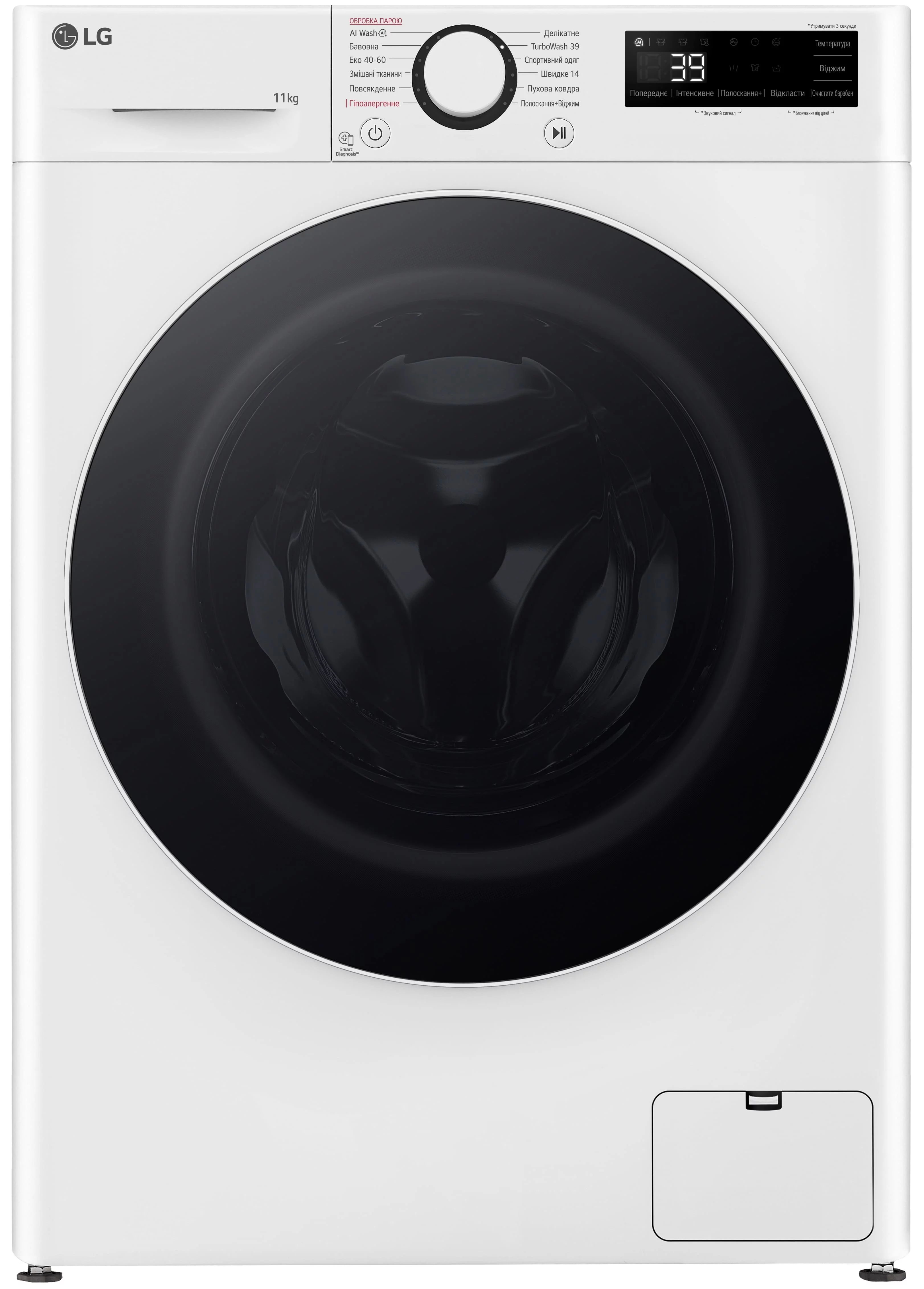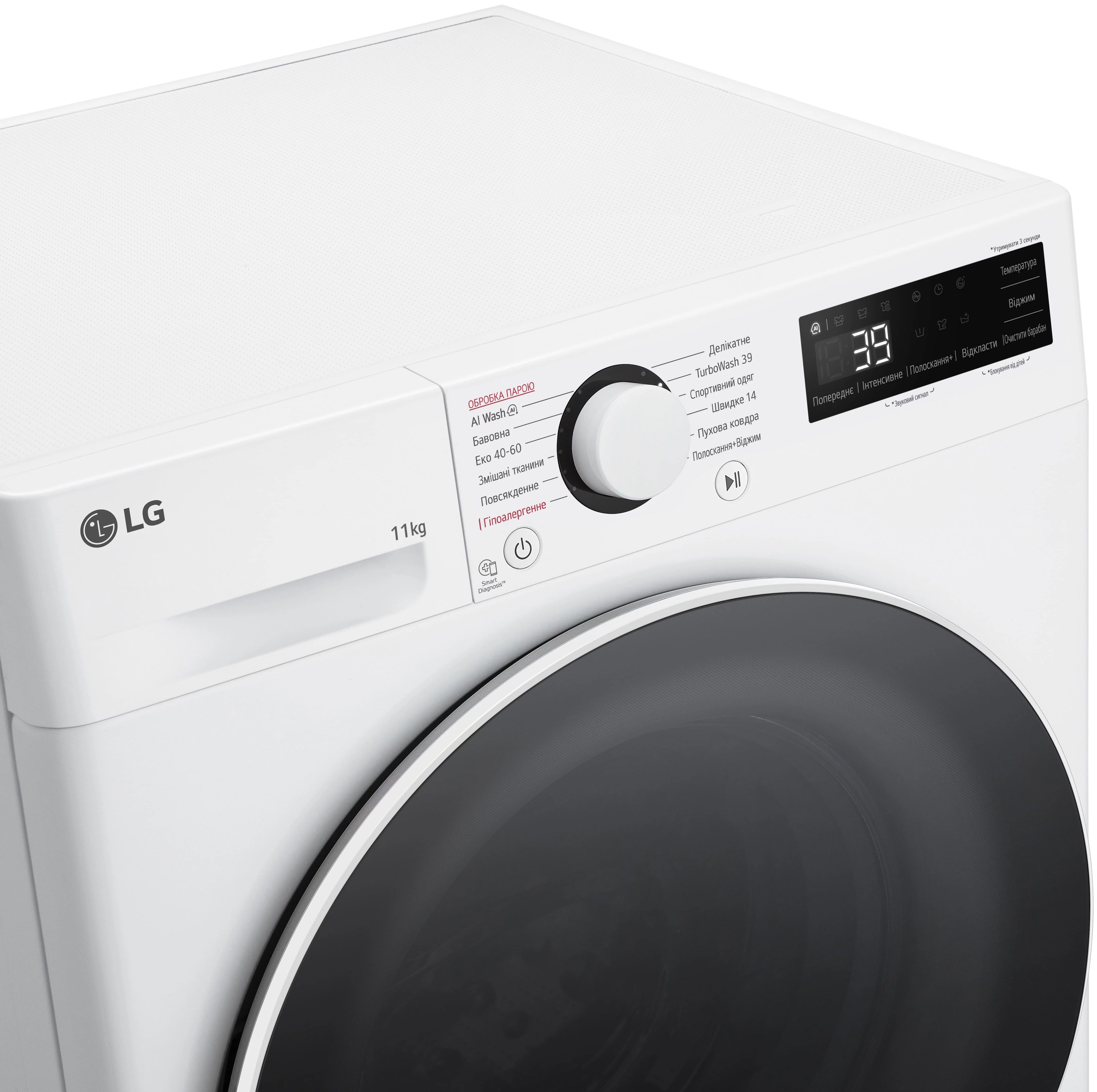 Пральна машина LG фронтальна, 11кг, 1400, A, 57см, дисплей, пара, інвертор, білий