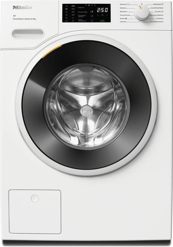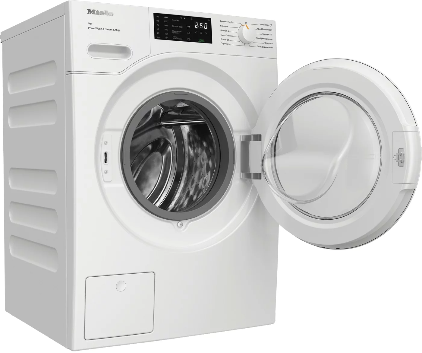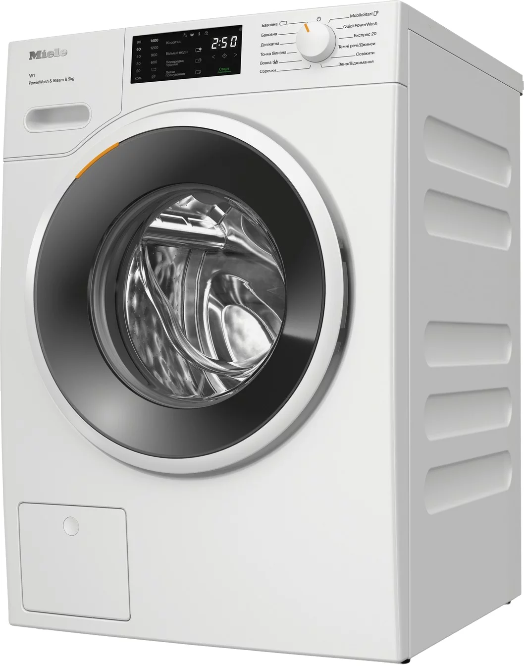 Miele@home, MobileControl, Wi-Fi, автоматичний контроль завантаження, Вибір швидкості віджиму, відсік для миючих засобів Auto Clean, дозування Cap Dosing, захисне відключення, лічильник витрати води, Мова пристрою: українська, можливість установки Side-by-Side, можливість установки в колону з сушильною машиною, можливість установки в нішу (85 см), мотор Profi Eco, правий дверний упор, ремінний привід двигуна, система Power Wash, Функція дозавантаження білизни