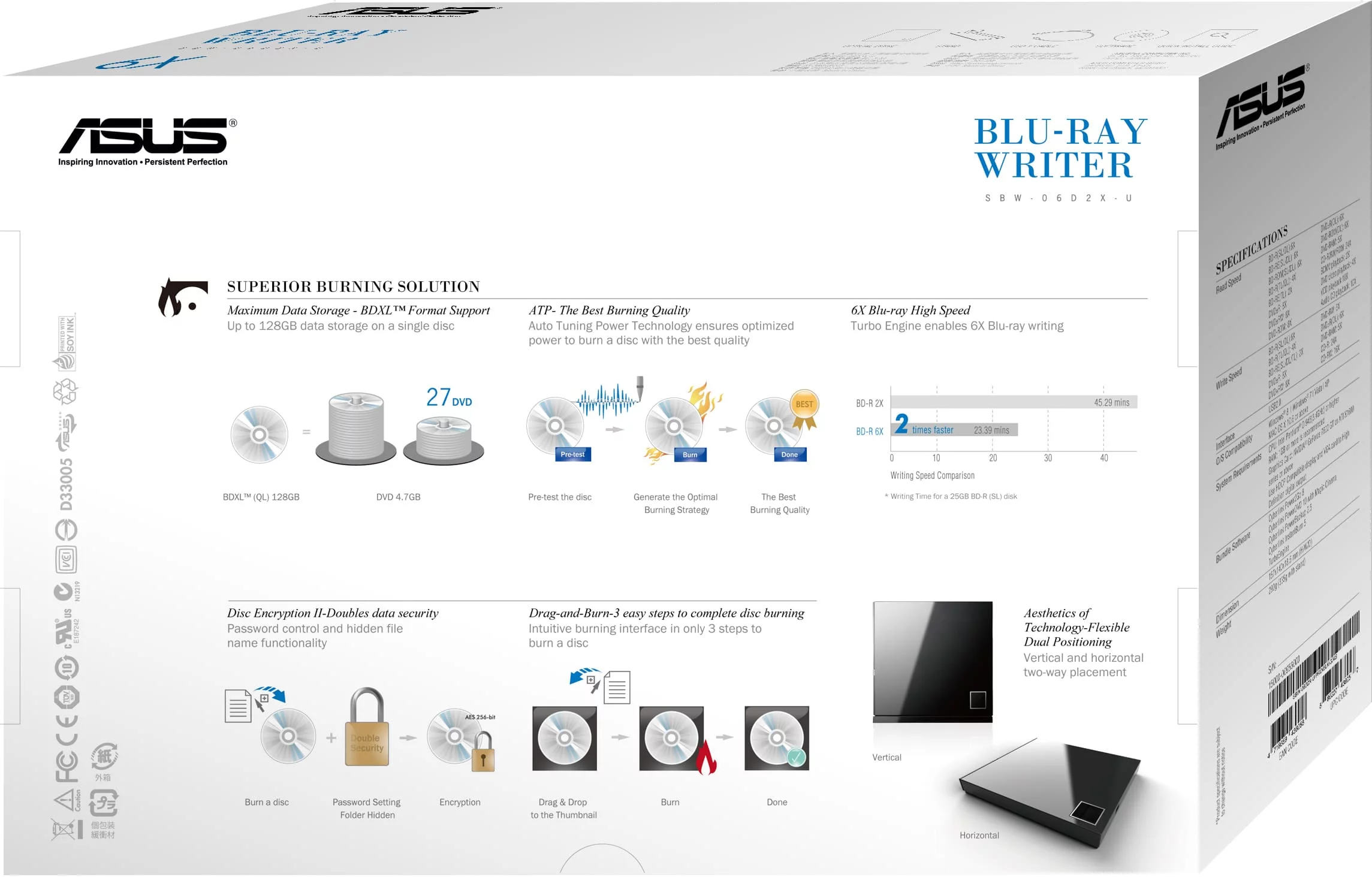 ASUS SBW-06D2X-U — це стильний портативний Blu-ray привід у форматі Slim для читання та запису Blu-ray, DVD і CD-дисків. Завдяки підтримці M-DISC ви можете зберігати архіви на десятиліття. Підключення через USB 2.0 дозволяє легко використовувати привід удома чи в дорозі — без зовнішнього живлення. Чорний корпус із лаконічним дизайном пасує до будь-якого ноутбука чи ПК. ASUS SBW-06D2X-U — надійність та безпечне зберігання важливих даних у компактному форматі.