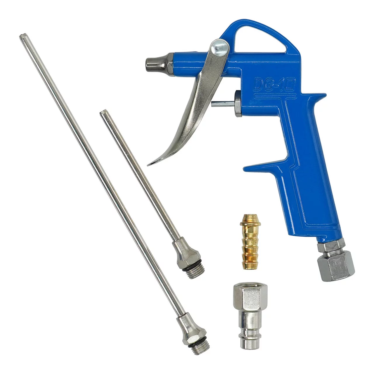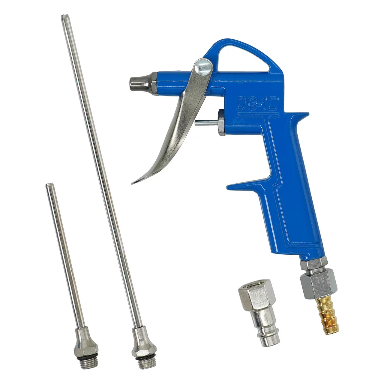 Продувний пістолет з комплектом насадок 15, 95, 190 мм AIRKRAFT DG-20 – універсальний пневмоінструмент для очищення важкодоступних місць від пилу, стружки, тирси та інших забруднень. Постачається з трьома змінними подовженими насадками (15, 95 та 190 мм), що дозволяють працювати як у відкритих зонах, так і у вузьких або глибоких отворах. Корпус виконаний із міцного металу, а ергономічне руків'я забезпечує комфорт під час тривалої роботи.