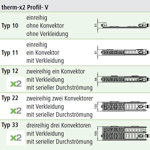 Унікальна технологія Kermi Therm X2 - теплоносій, що подає, спочатку проходить по передній панелі яка нагріваючись віддає тепло у напрямку від стіни тобто ближче до споживача, не потрібно прогрівати весь радіатор щоб домогтися конвекції (передачі тепла).
