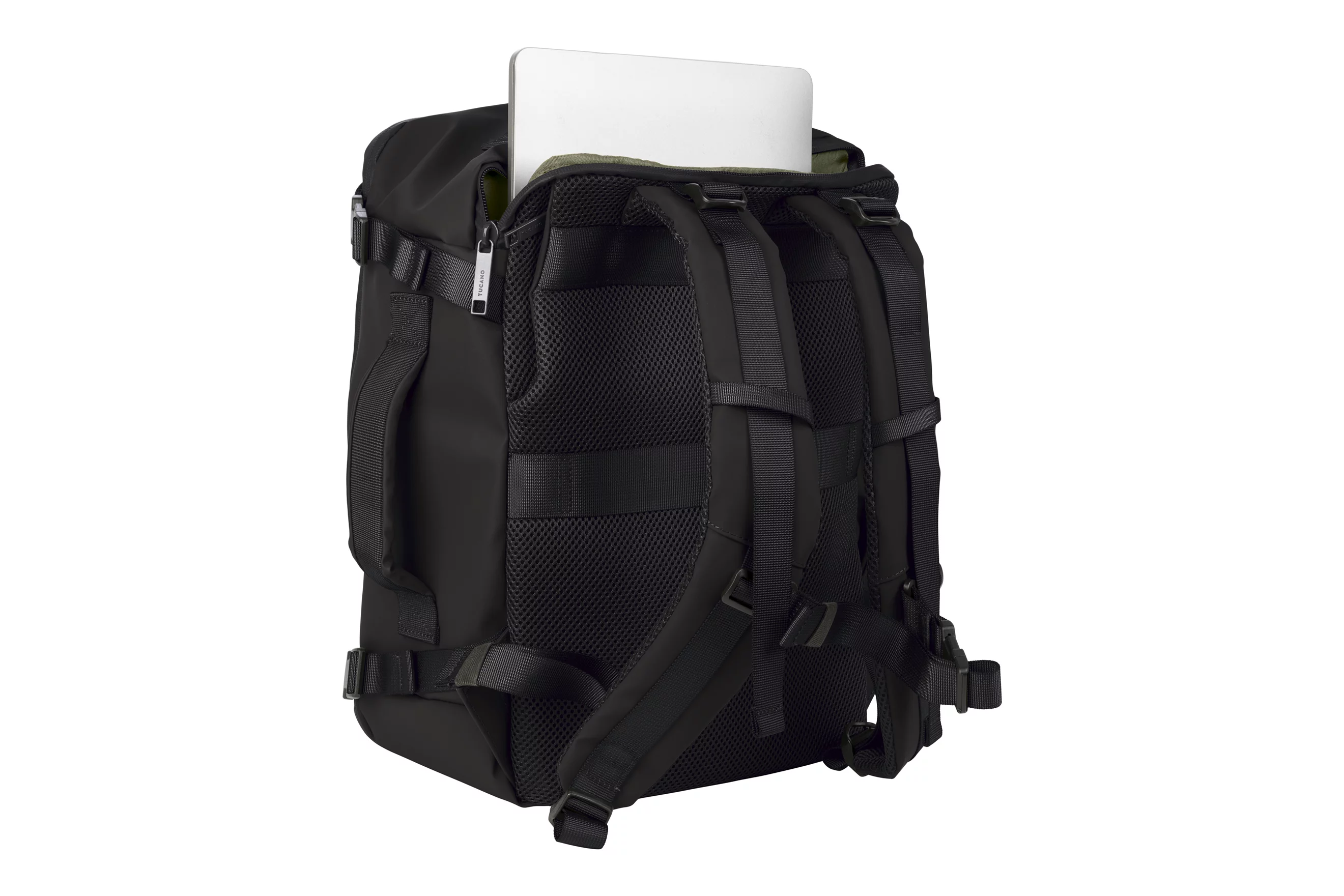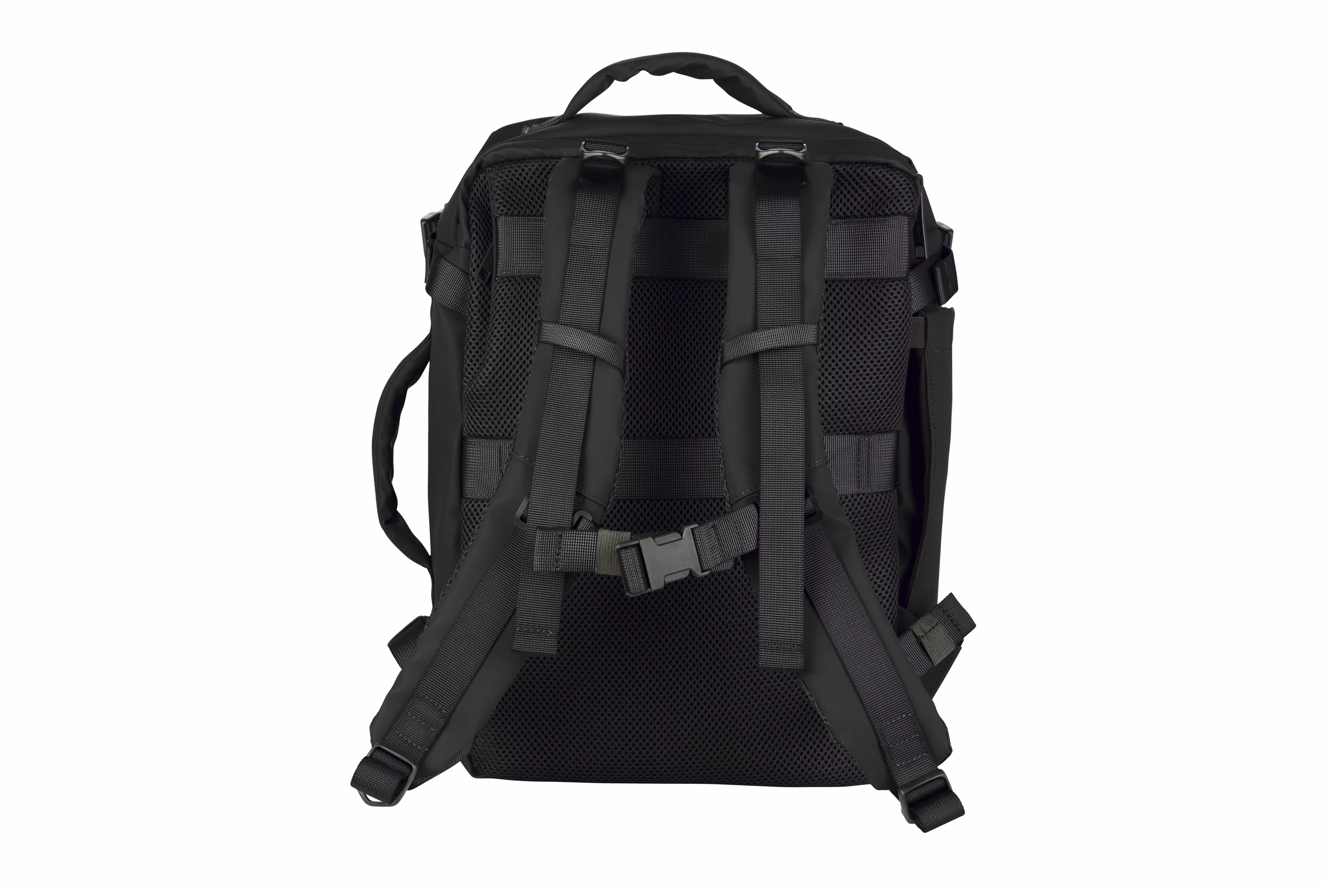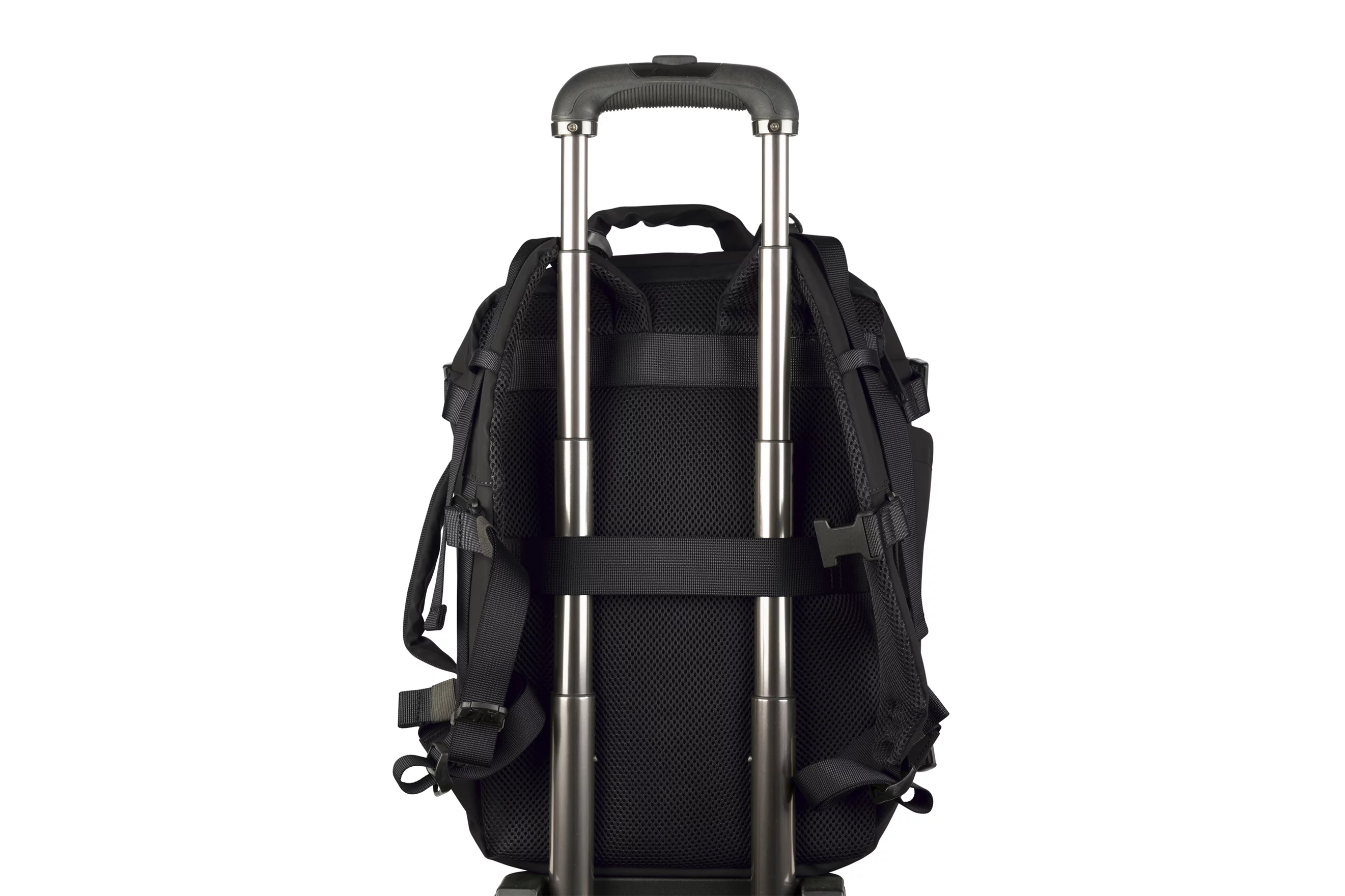 бічні кишені для пляшки та парасольки, велика зовнішня передня кишеня, велике містке внутрішнє відділення, дощозахисні блискавки, компактний дорожній рюкзак із водонепроникного матеріалу, окреме м`яке заднє відділення для ноутбука, розроблено відповідно до вимог бюджетних авіакомпаній до розміру, спинка з безпечною кишенею