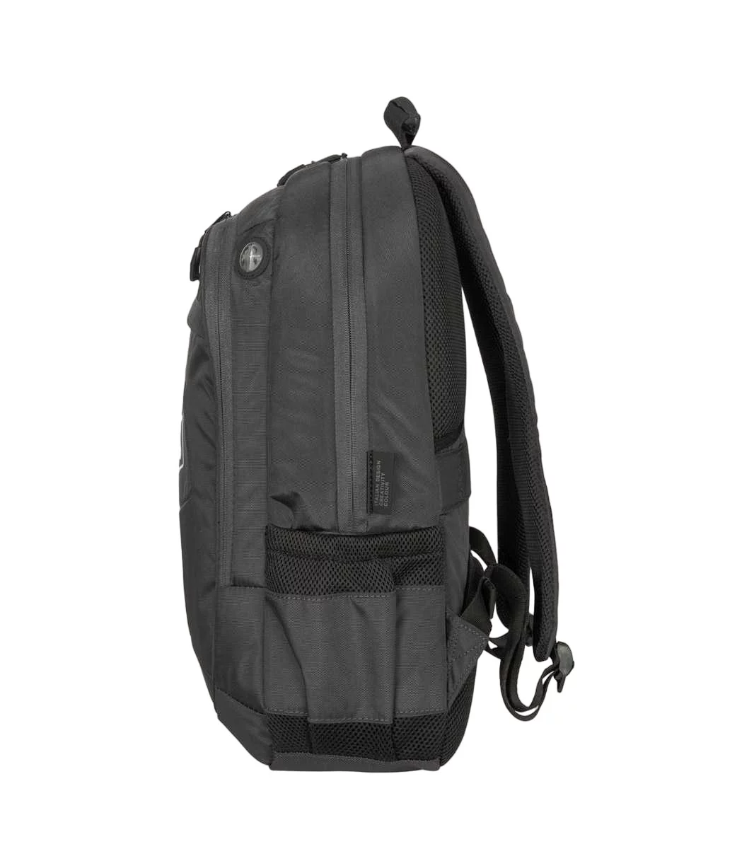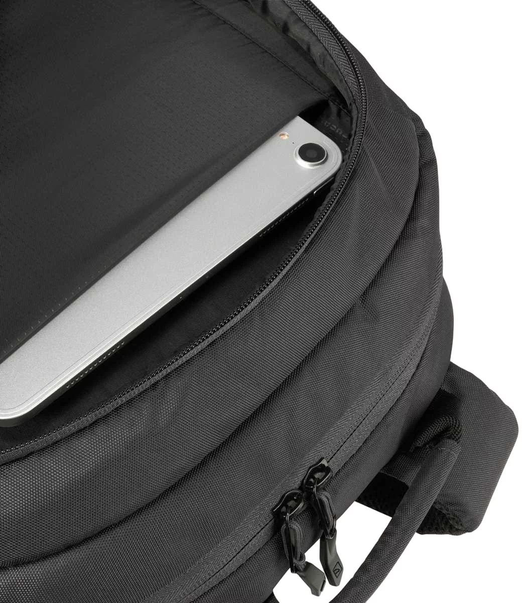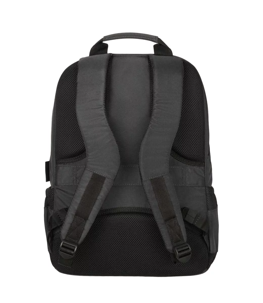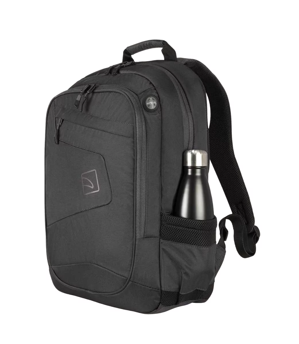 Повсякденний рюкзак Tucano Lato 15 в діловому стилі зі спортивними нотками розраховано для 16-дюймового MacBook Pro та 15,6-16 дюймових ноутбуків. Виготовлений із матеріалів з використанням переробленого пластику. Організована передня зовнішня кишеня та маленька кишеня для аксесуарів, обидві на блискавці. Невеликий спеціальний отвір дозволяє виводити навушники. Велике внутрішнє відділення оснащене м'якою подвійною кишенею з фіксуючим ремінцем на липучці (окрема кишеня для ноутбука і окрема кишеня для планшету). Збоку дві еластичні сітчасті кишені для пляшок, парасольок і предметів подібного розміру. Задня сторона, з ергономічною спинкою та регульованими м'якими плечовими лямками, оснащена паском для кріплення рюкзакая на ручці валізи.