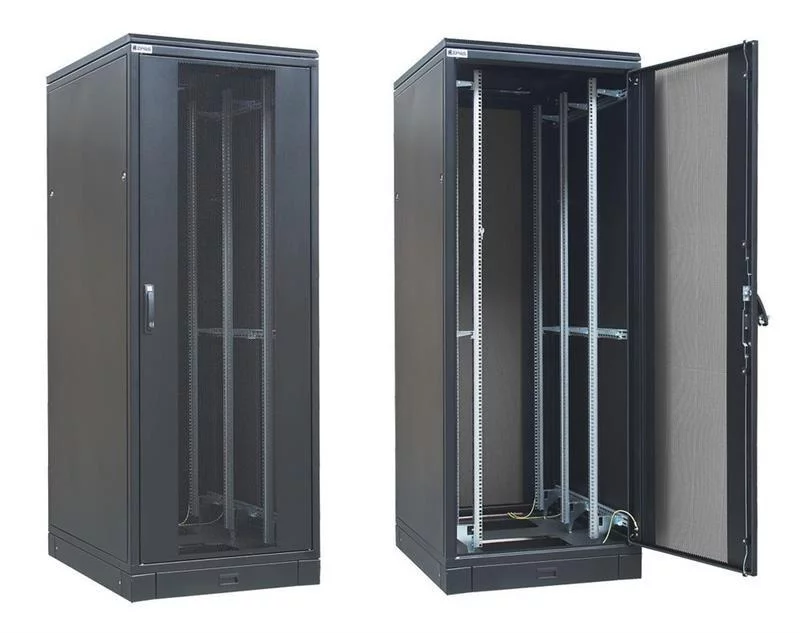Шафа ZPAS 19", 42U, SZB IT - це серверна шафа з передніми одностулковими перфорованими дверима і задніми розпашними дверима, розмірами 600x1200 мм. Має максимальну вантажопідйомність до 1500 кг та виконана в чорному кольорі.