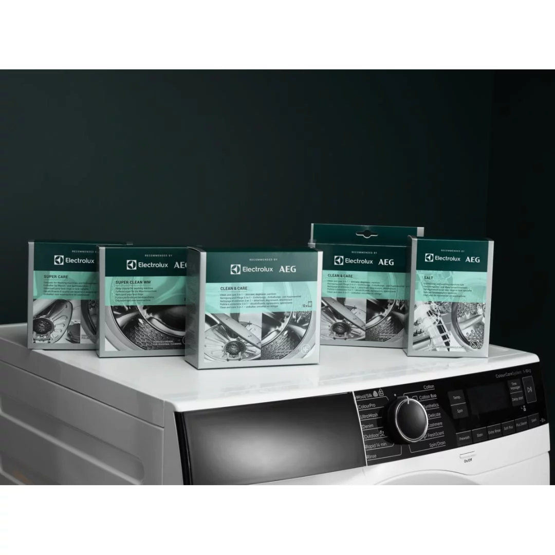 Сіль Electrolux запобігає накопиченню вапняних відкладень та кальцію, які негативно впливають на прилад. Цю сіль можна використовувати у посудомийних машинах та деяких пральних машинах для забезпечення сяючого блиску посуду та збереження яскравості кольорів одягу.