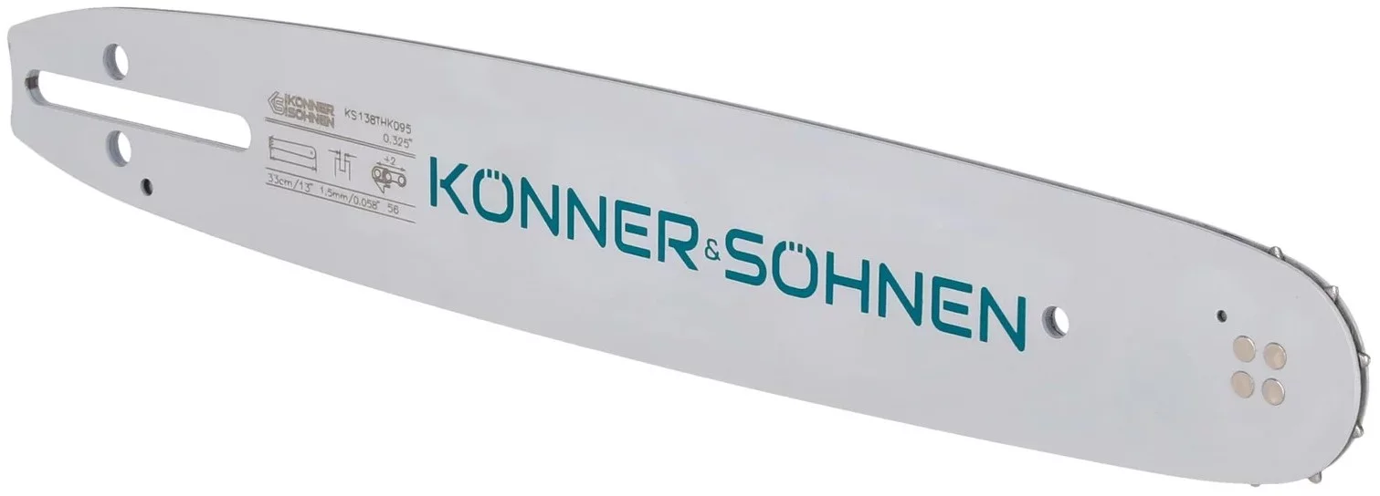 Шина Könner & Söhnen для бензопил підходить для заготівлі дров, догляду за садом, обрізки дерев і чагарників, а також будівельно-ремонтних робіт. Корпус із трьох зварених металевих пластин з великим центральним вирізом підвищує жорсткість і стабільність. Проста конструкція забезпечує швидке встановлення, а добір матеріалів — тривалий ресурс.