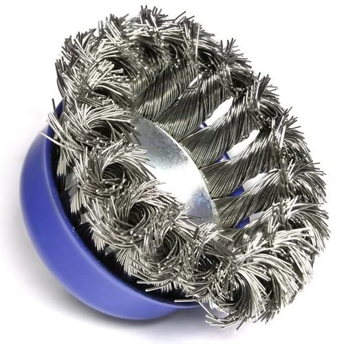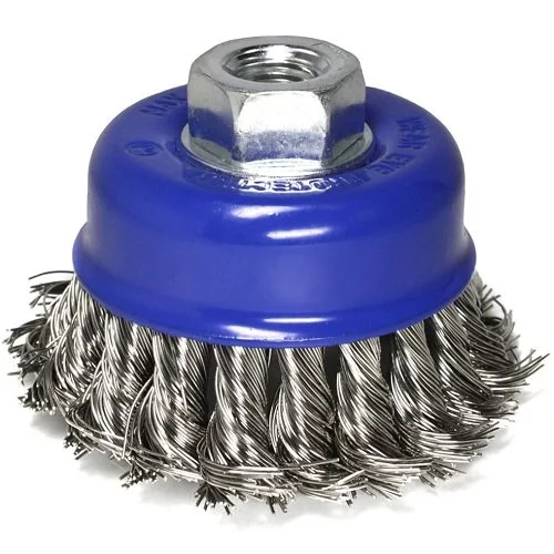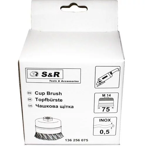 Щітка чашкова S&R 136256075 кручений дріт 75 мм застосовується разом з болгаркою, вона дозволяє видаляти іржу, знімати лакофарбові покриття, зачищати дерев'яні, металеві, бетонні поверхні.