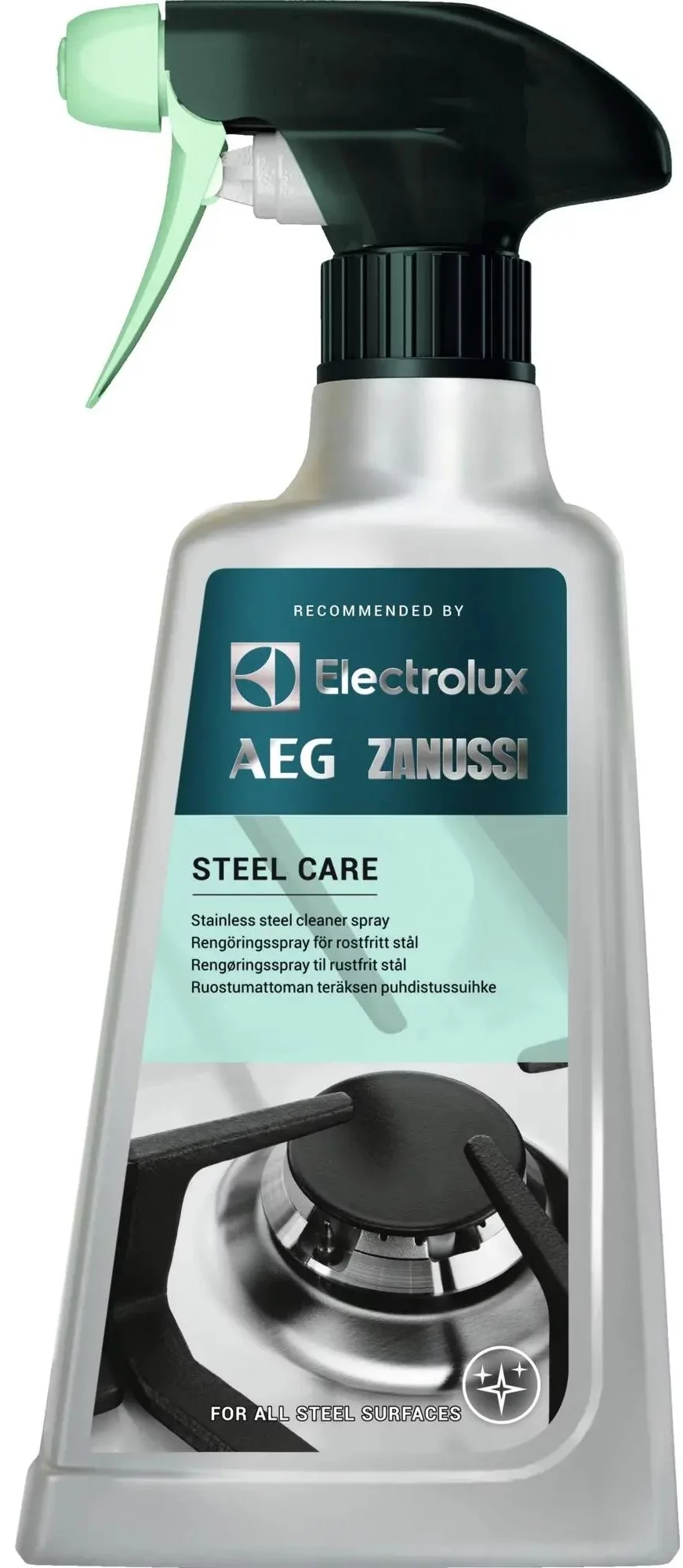 Надайте поверхням з нержавіючої сталі справжнього блиску з очищуючим спреєм Electrolux. Він лагідно очищує та полірує всі поверхні — від кухонних витяжок до холодильників. Формула, що не потребує змивання, забезпечує блискучі поверхні без розводів, залишаючи захисну плівку для ідеального вигляду.
