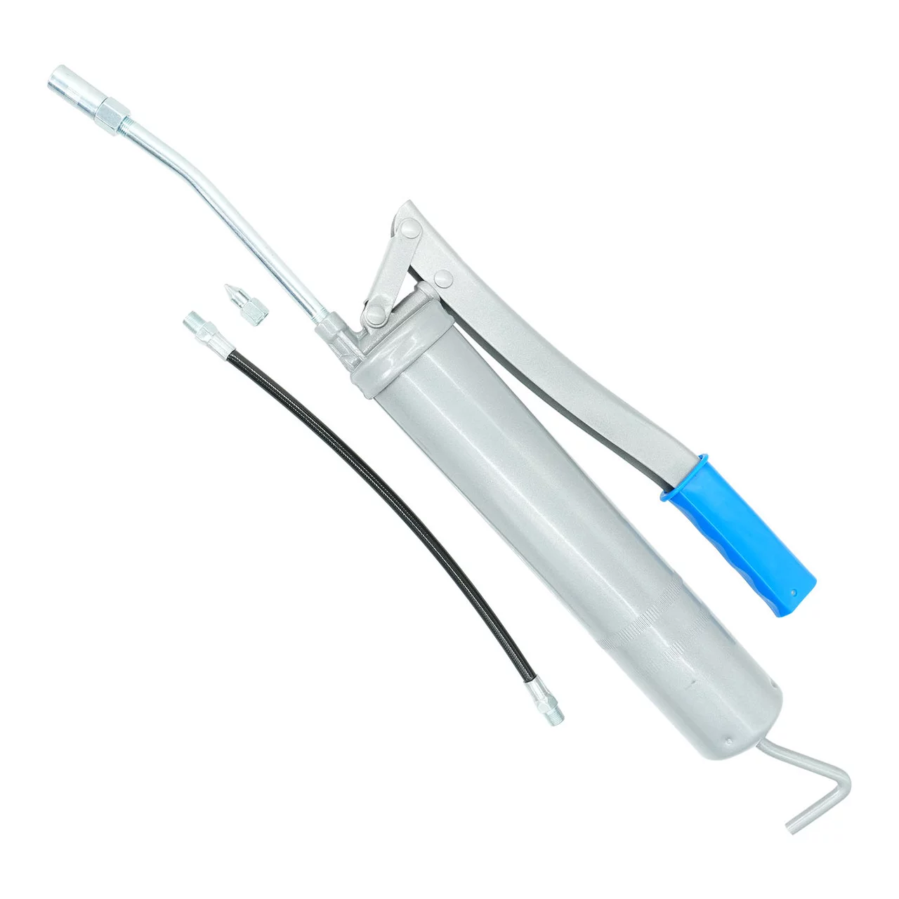 Шприц-маслянка з гнучким шлангом 400 мл STANDART GG400LM – зручний інструмент для змащування вузлів і механізмів у важкодоступних місцях. Оснащений гнучким шлангом, що забезпечує точну подачу мастила навіть під кутом чи у вузьких просторах. Місткість резервуара 400 мл дозволяє працювати без частого дозаправлення. Корпус виготовлений із міцного металу, що гарантує довговічність та надійність у використанні.