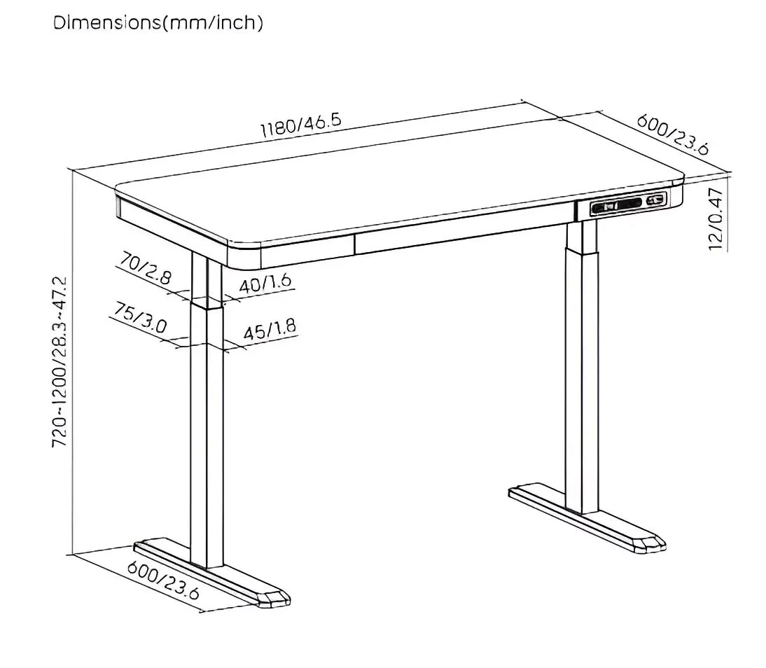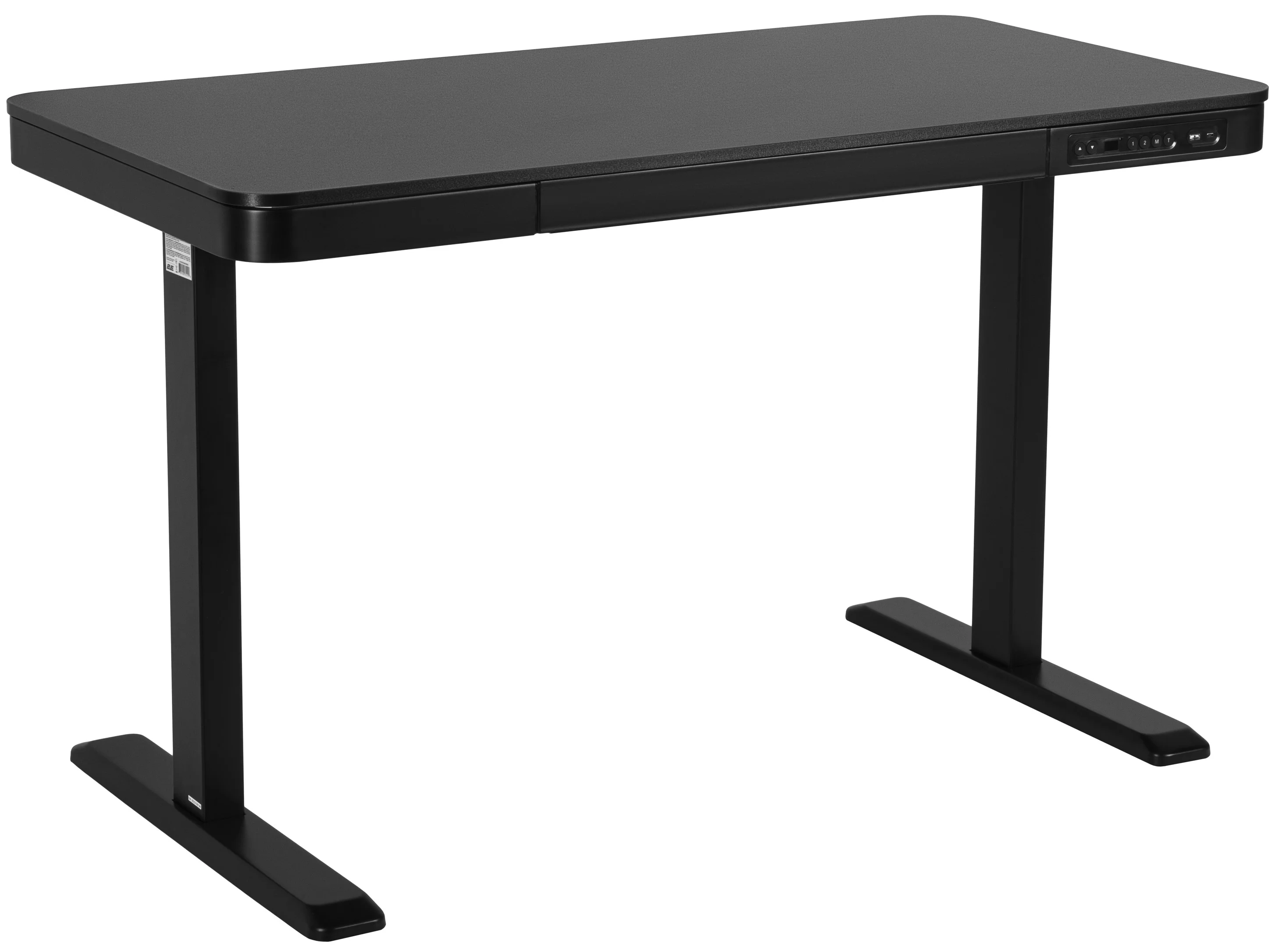 Комп’ютерний моторизований стіл 2Е СЕ218B із регулюванням висоти чорного кольору оснащено стільницею з ламінованого МДФ розміром 600 × 1 180 мм, яка за допомогою вбудованого електродвигуна регулюється за висотою в діапазоні від 720 до 1 200 мм. Максимальне навантаження – до 60 кг.