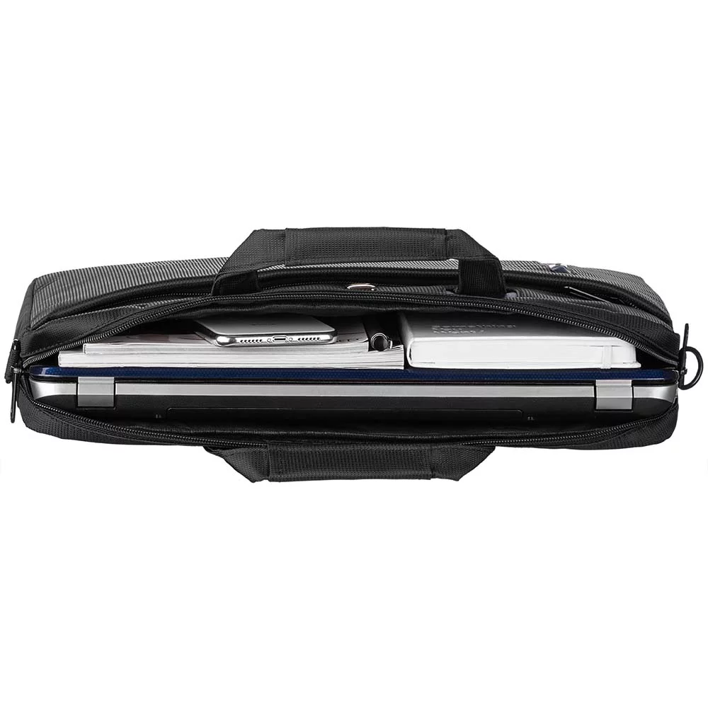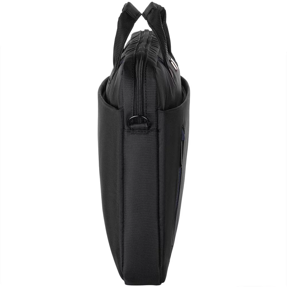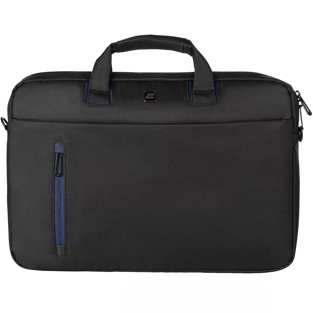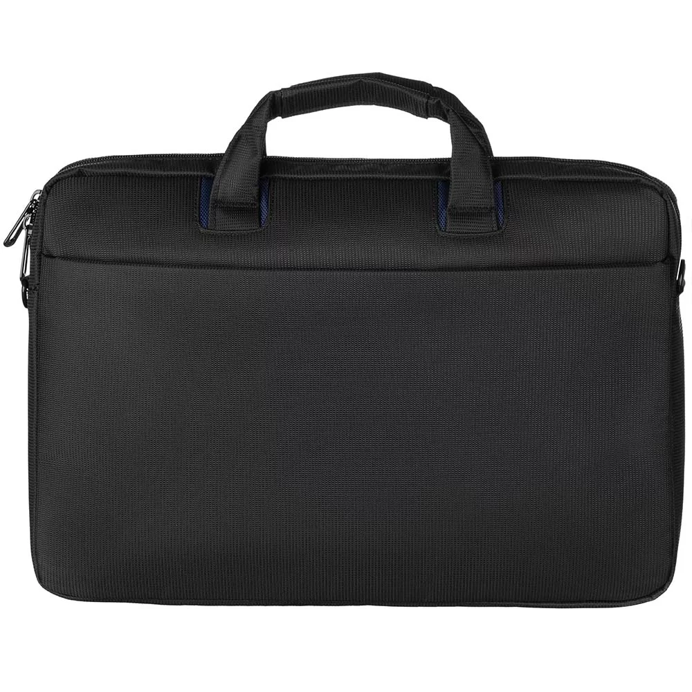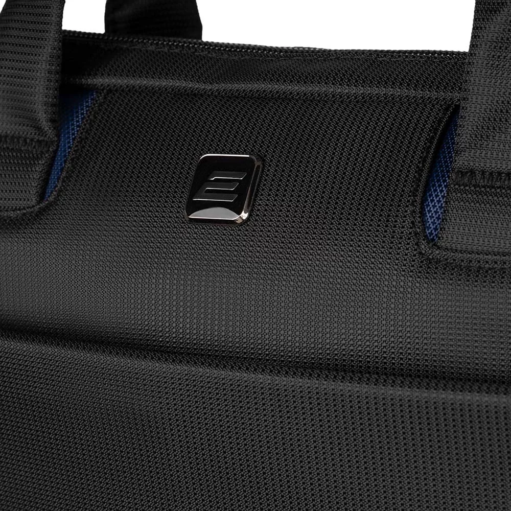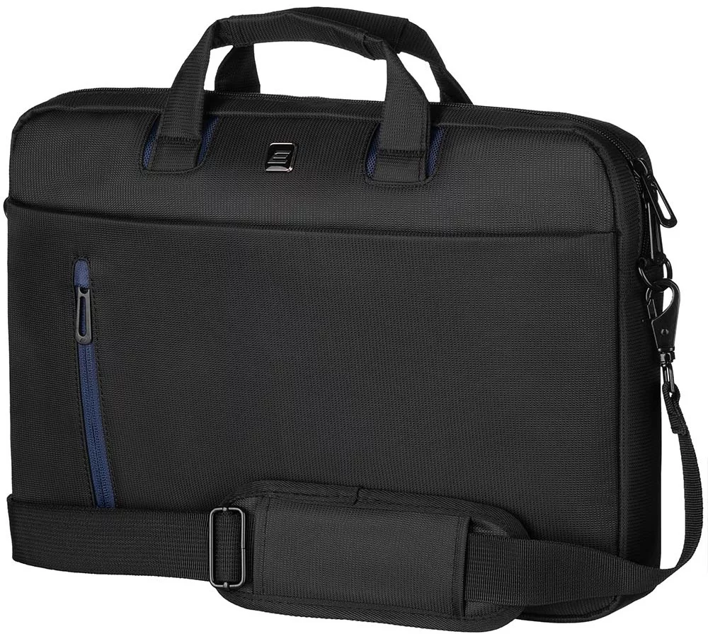 Сумка чорного кольору з синіми вставками для повсякденного використання. Виконана з водовідштовхуючого нейлону в комбінації з матеріалом дна і стінок, що амортизує поштовхи та удари.