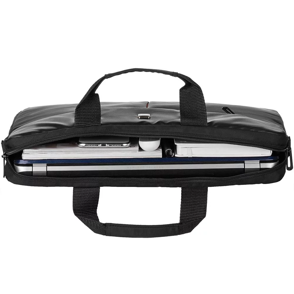Сумка чорного кольору для повсякденного використання. Виконана з водовідштовхуючого нейлону в комбінації з матеріалом дна і стінок, що амортизує поштовхи та удари.