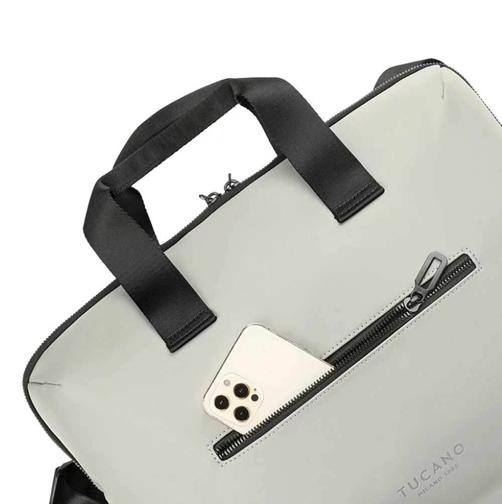 Сумка Tucano Gommo в стилі мінімалізм спортивного дизайну для ноутбука 15,6" і MacBook 16", виготовлена з прогумованого матеріалу. Має велике одинарне відділення з внутрішньою кишенею для ноутбука та зовнішньою кишенею для аксесуарів.