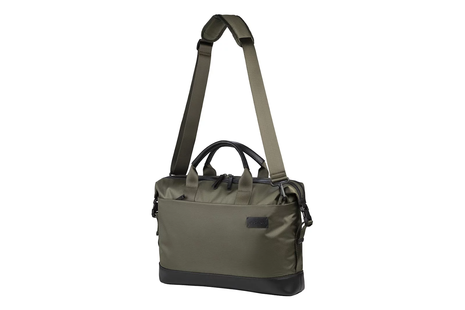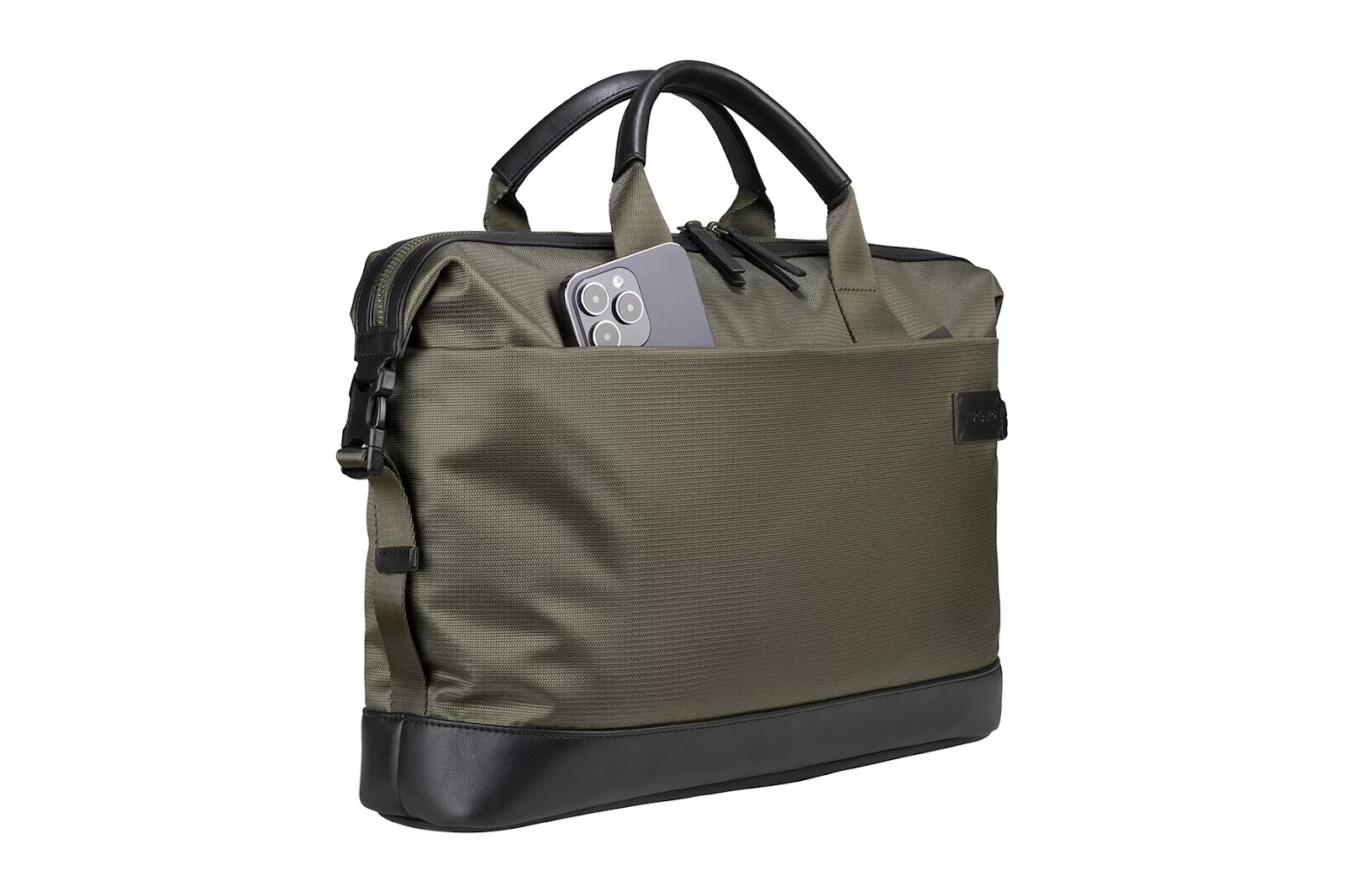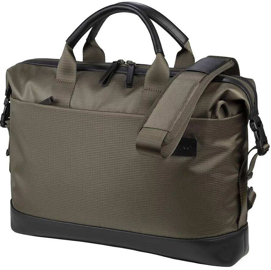 Ділова сумка з тканини, виготовленої з переробленого пластику, має деталі оздоблення з натуральної шкіри. Внутрішнє відділення з захисною кишенею для ноутбуків 15.6/16" або MacBook Pro 16". Широкий верхній отвір з легким доступом, (ширина отвору регулюється з обох боків за допомогою бічних ремінців і фіксується карабінами фасткес). Сумка Tucano Modo Premium 16 має добре організований внутрішній простір та кишеню для аксесуарів на передній частині. На зворотній стороні сумки інтегровано пасок-кріплення для розміщення та фіксації сумки на телескопічній ручці валізи.