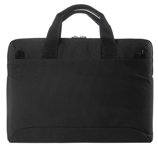 Надтонка сумка Tucano Smilza 13"/14" для ноутбуків розміром до 14.1 "включно. Пошита з високотехнологічного матеріалу з оздоблювальними деталями контрастного кольору. Єдине внутрішнє відділення з неопреновими куточками для надійної фіксації ноутбука. На передній стороні є містка зовнішня кишеня для аксесуарів (блок живлення, миша, смартфон). Подвійні ручки пришиті 5-ма швами, знімний плечовий ремінь з регулюванням по довжині, бігунки (зіпер-пуллер) з нержавіючої сталі.