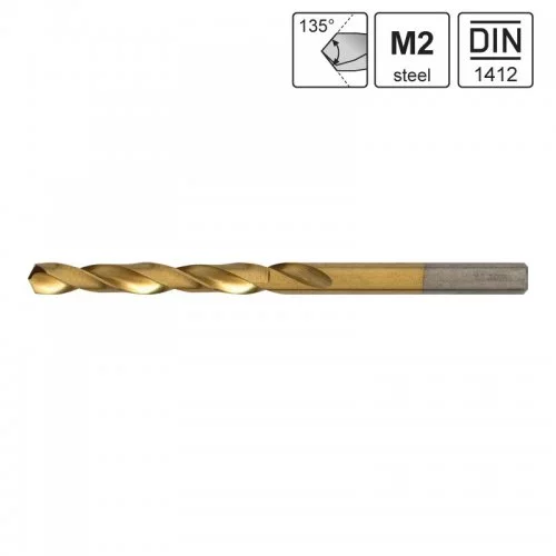 Виготовлено зі швидкорізальної сталі з нітрид-титановим покриттям для більшої міцності свердла, що дає можливість працювати з більш твердими матеріалами.