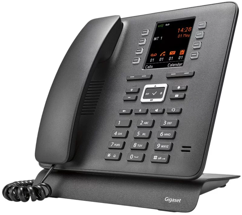 Gigaset Maxwell C (S30853-H4007-R101) — настільний бездротовий DECT-телефон, що працює у складі IP-DECT інфраструктури на базах Gigaset Pro. 2,8″ кольоровий TFT-дисплей полегшує навігацію, а 8 програмованих клавіш пришвидшують доступ до функцій і контактів. Гарнітури підключаються через Bluetooth® або RJ-9, також передбачено Micro-USB для сервісних задач. Підтримує телефонну книгу на 500 записів, LDAP/XML та бездротове оновлення ПЗ (SUOTA). Сумісний із базами Gigaset Pro N510, N670, N720, N870. Підходить для офісів, контакт-центрів і переговорних кімнат.