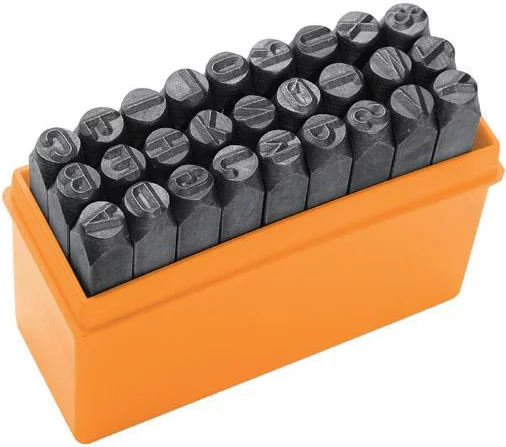 В комплект входять 27 предметів – штамповок літер латинського алфавіту розміром 6х62 мм, призначених для нанесення маркування на некалені сталі і метали твердістю до HRC 30 по Роквеллу. Штампувальні пристосування виготовлені зі спеціальної загартованої інструментальної сталі.