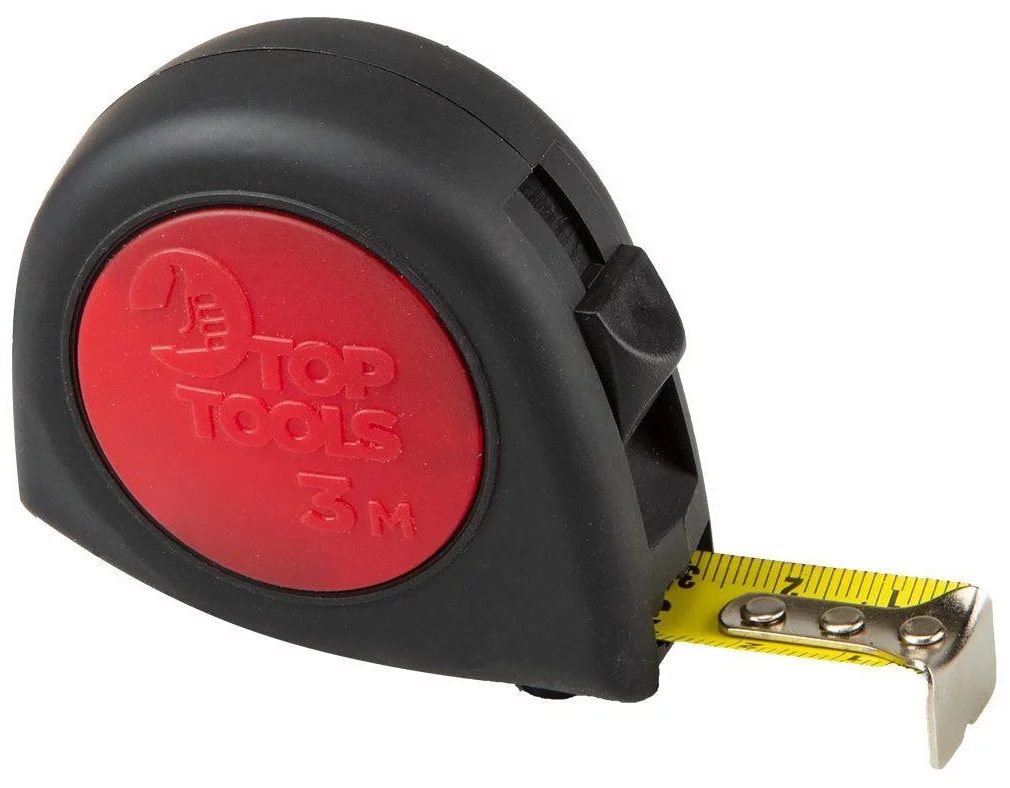Рулетка сталева Top Tools 27C313 3 мтера з фіксатором змотування стрічки. Подвійне лакове покриття захищає стрічку від зношування. Амортизатор змотування рулетки оберігає гачок від пошкодження. Ергономічна форма корпусу забезпечує зручне та міцне захоплення, а антиковзкий матеріал забезпечує комфорт та безпеку під час роботи.