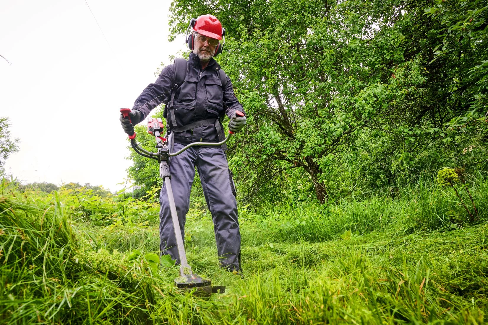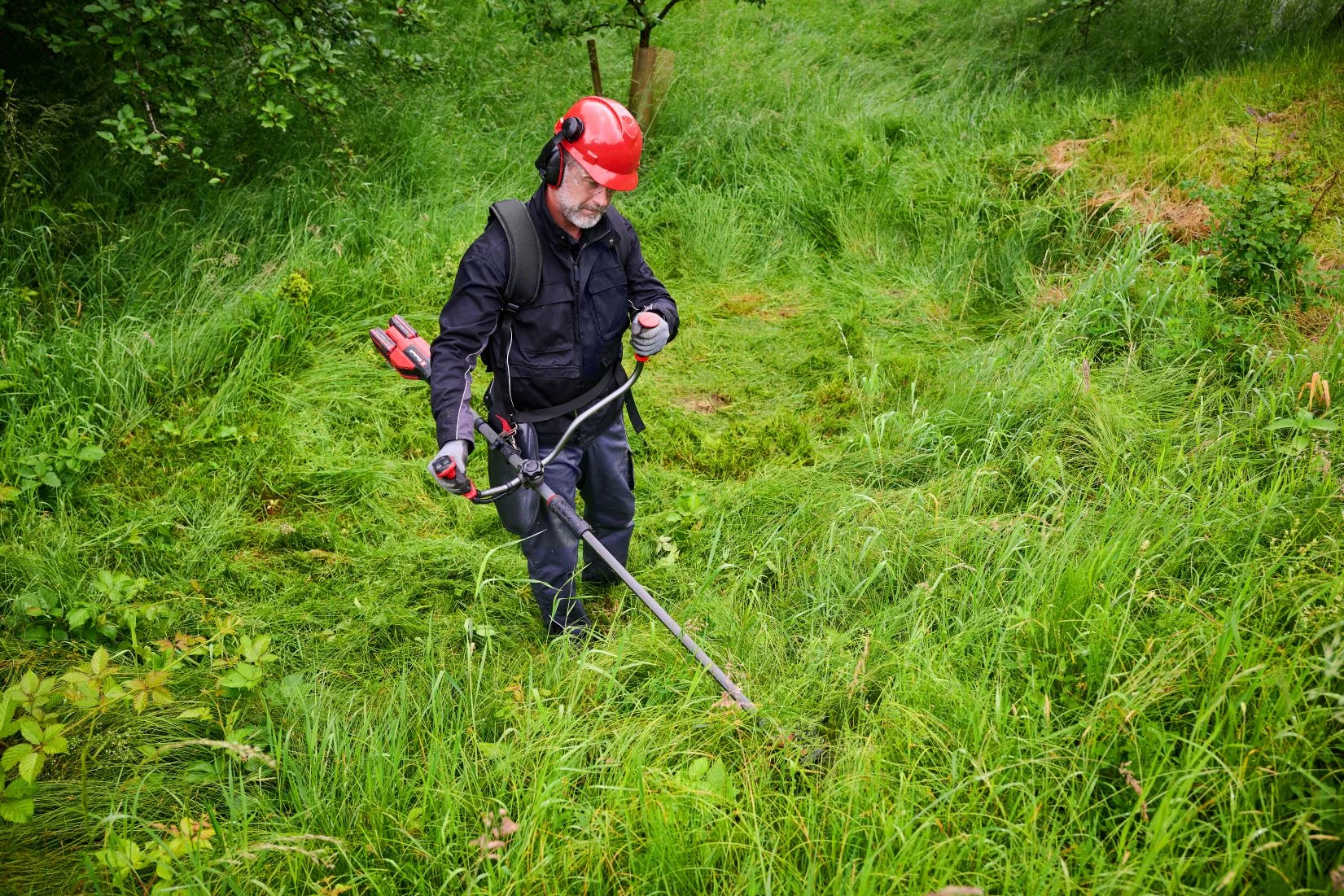 Акумуляторна коса Einhell Professional GP-BC 36/430 Li BL - Solo — 36 В (Power X-Change 2×18 В), безщіткова, для високої трави, кущів і заростей. У комплекті: шпуля 43 см (автоподача) та 3-зубий ніж 25,5 см; швидка заміна завдяки блокуванню шпинделя. Велосипедна рукоятка, 2-ступенева електронна швидкість і індикатор заряду на рукоятці; дводільний кожух, ударозахист АКБ сталевою рамою, роздільний вал і настінне кріплення.