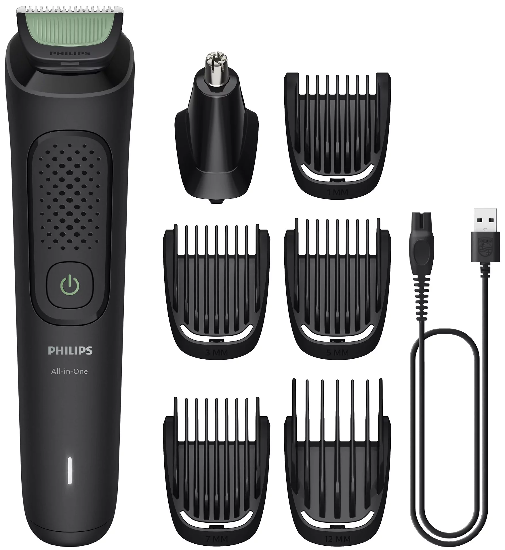 Створений для гнучкості й ефективності. Тример Philips All-in-One Series 3000 має 7 насадок, сталеві леза, які самі заточуються, для довготривалої точності й заокруглені кінці для більш делікатного підстригання, чим забезпечує універсальність для ефективного вирішення всіх потреб у догляді.