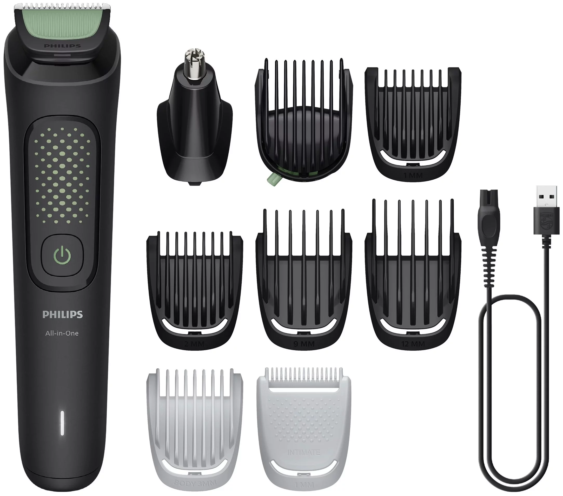 Створений для гнучкості й ефективності. Тример Philips All-in-One 3000 Series має 9 насадок, сталеві леза, які самі заточуються, для довготривалої точності й заокруглені кінці для більш делікатного підстригання, чим забезпечує універсальність для ефективного вирішення всіх ваших потреб у догляді.