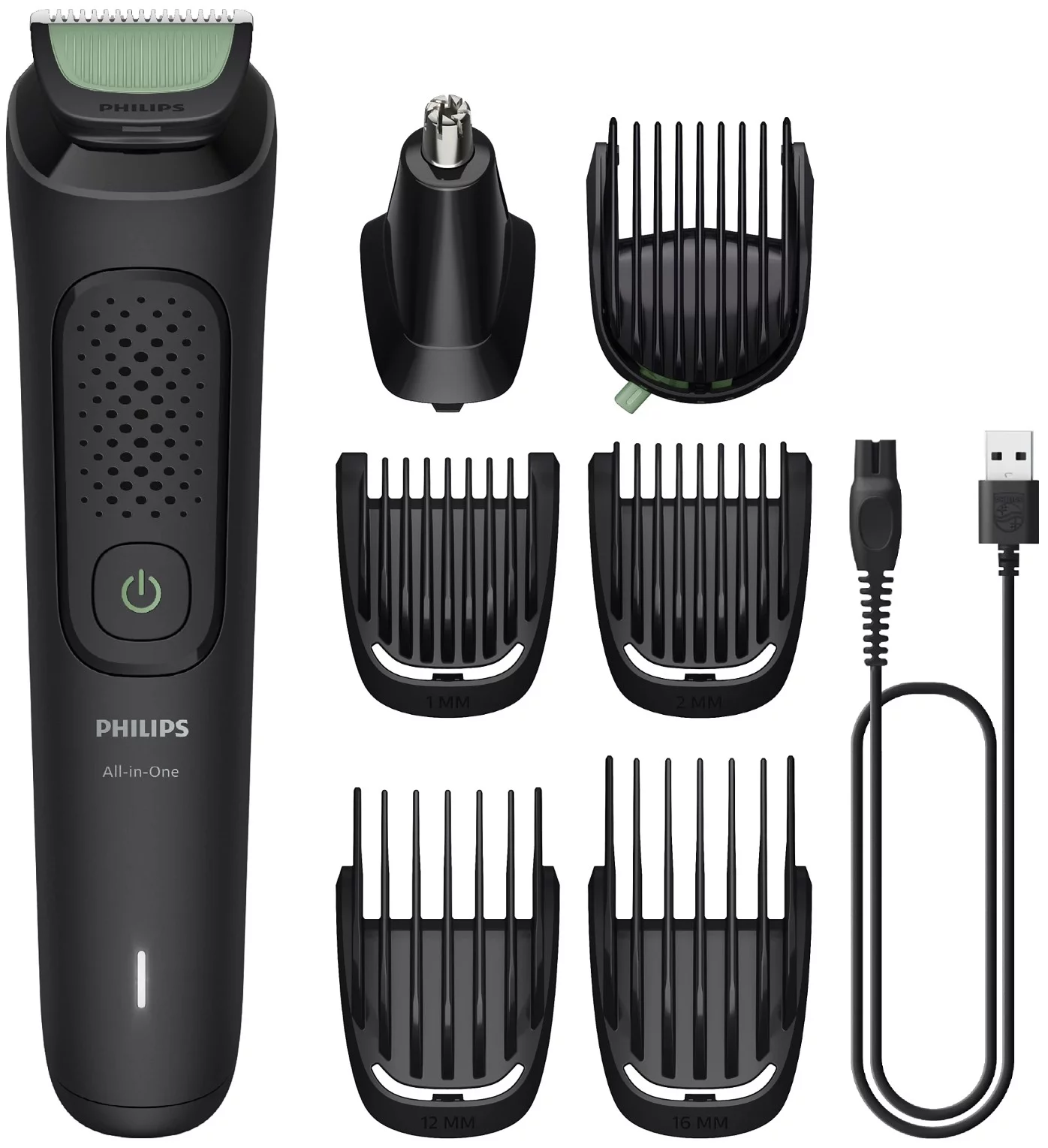 Створений для гнучкості й ефективності. Тример Philips Series 3000 має 7 насадок, сталеві леза, які самі заточуються, для довготривалої точності й заокруглені кінці для більш делікатного підстригання, чим забезпечує універсальність для ефективного вирішення всіх потреб у догляді.