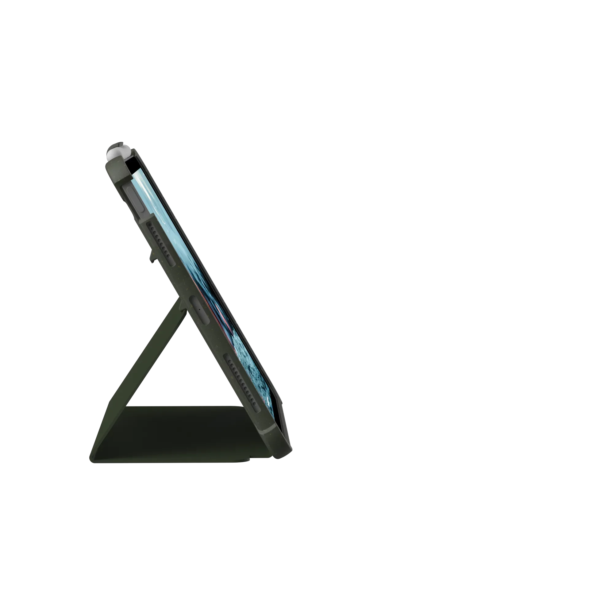 Додатково: вбудований тримач для стілуса Apple Pencil, захисні куточки, Захист при падінні відповідно до військового стандарту MIL STD 810G 516.6, Легкий доступ до екрану і портів, функції автозасинання автопробудження. Чохол виводить iPad з режиму сну при відкритті кришки і повертає його в режим сну при закритті