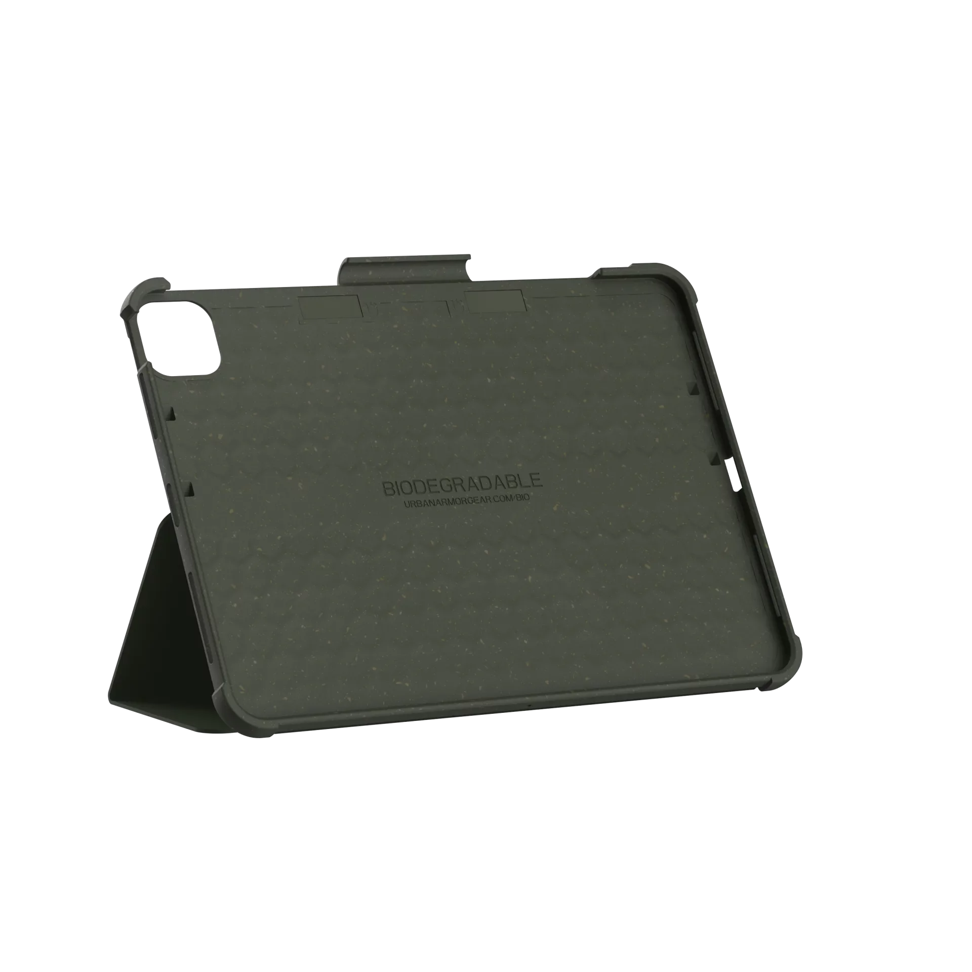 Задня частина чохла UAG серії Outback є біорозкладною та компостованою, завдяки використанню пластику на біологічній основі, який є одночасно біорозкладним та компостованим відповідно до ASTM U.S. D6400-04 та E.U. Через природу біорозкладаємих матеріалів можуть бути невеликі косметичні дефекти.