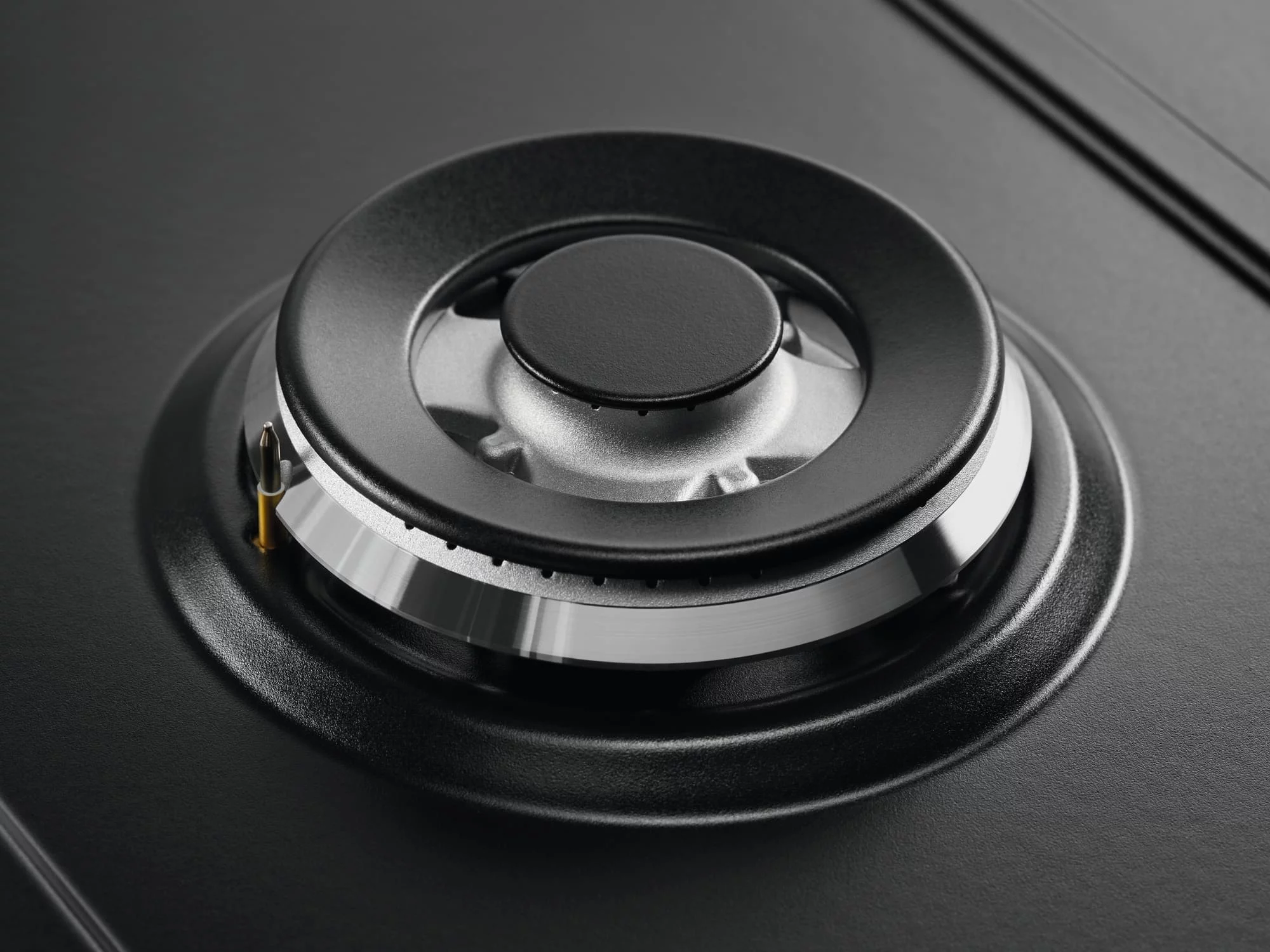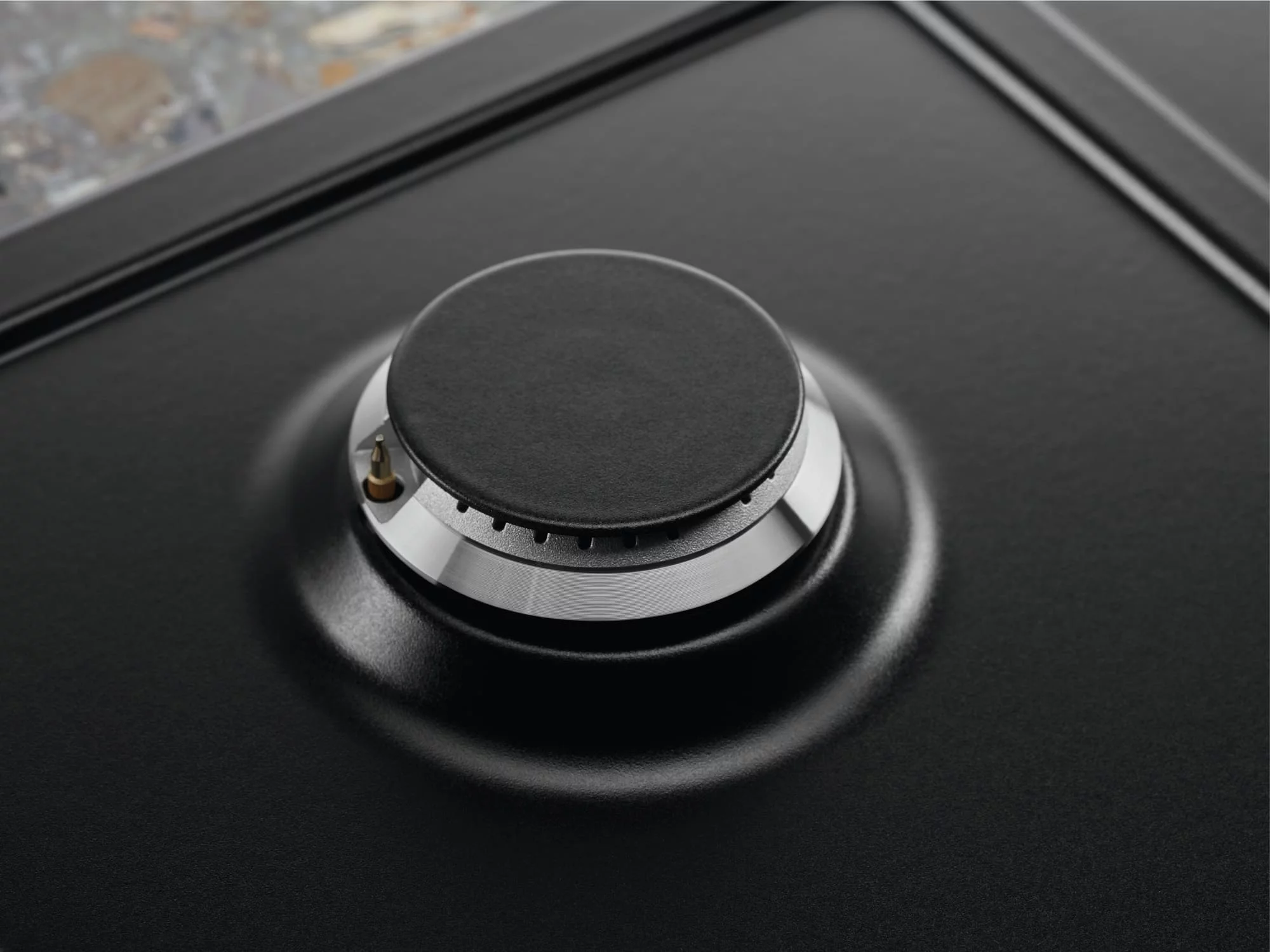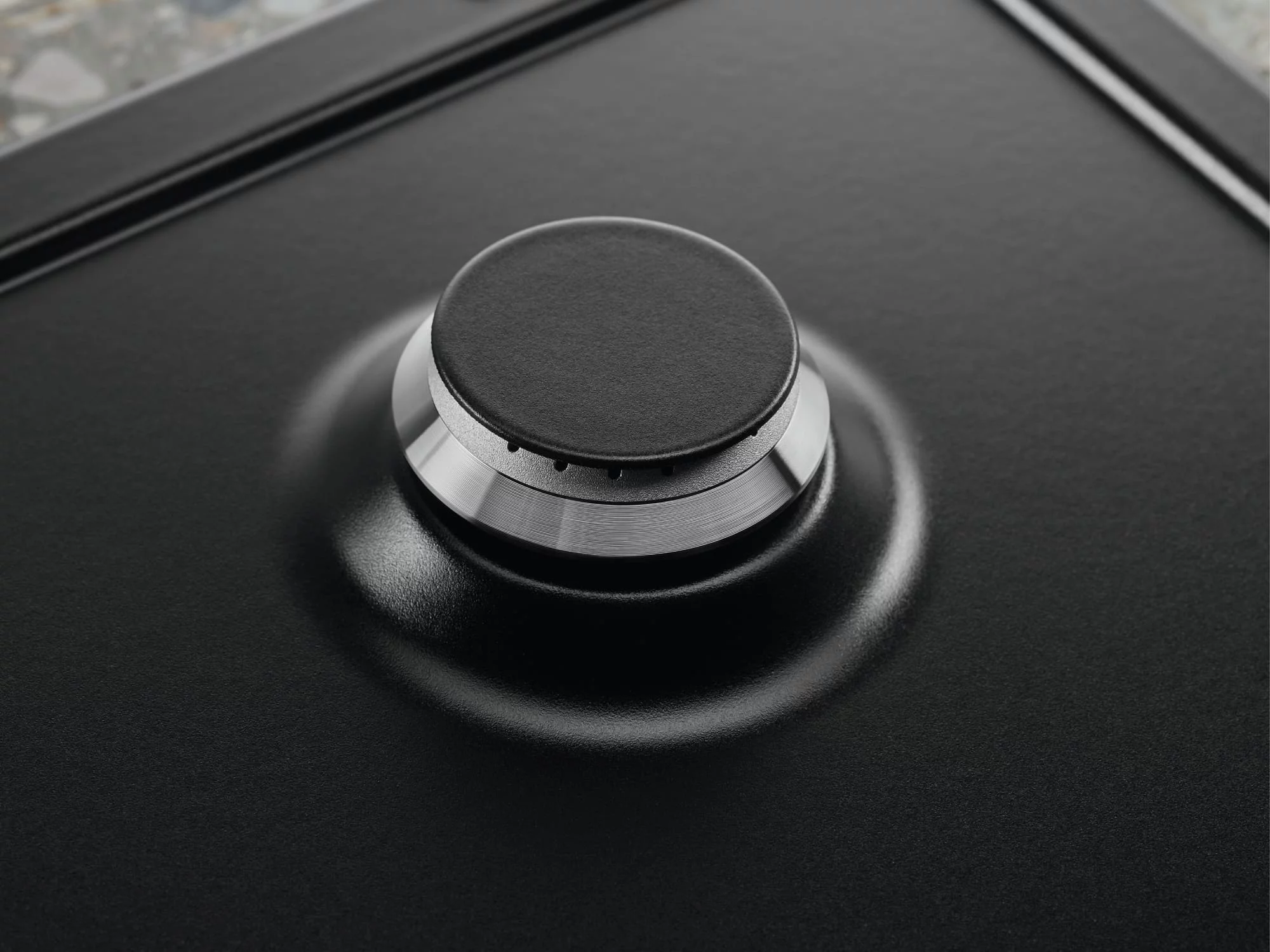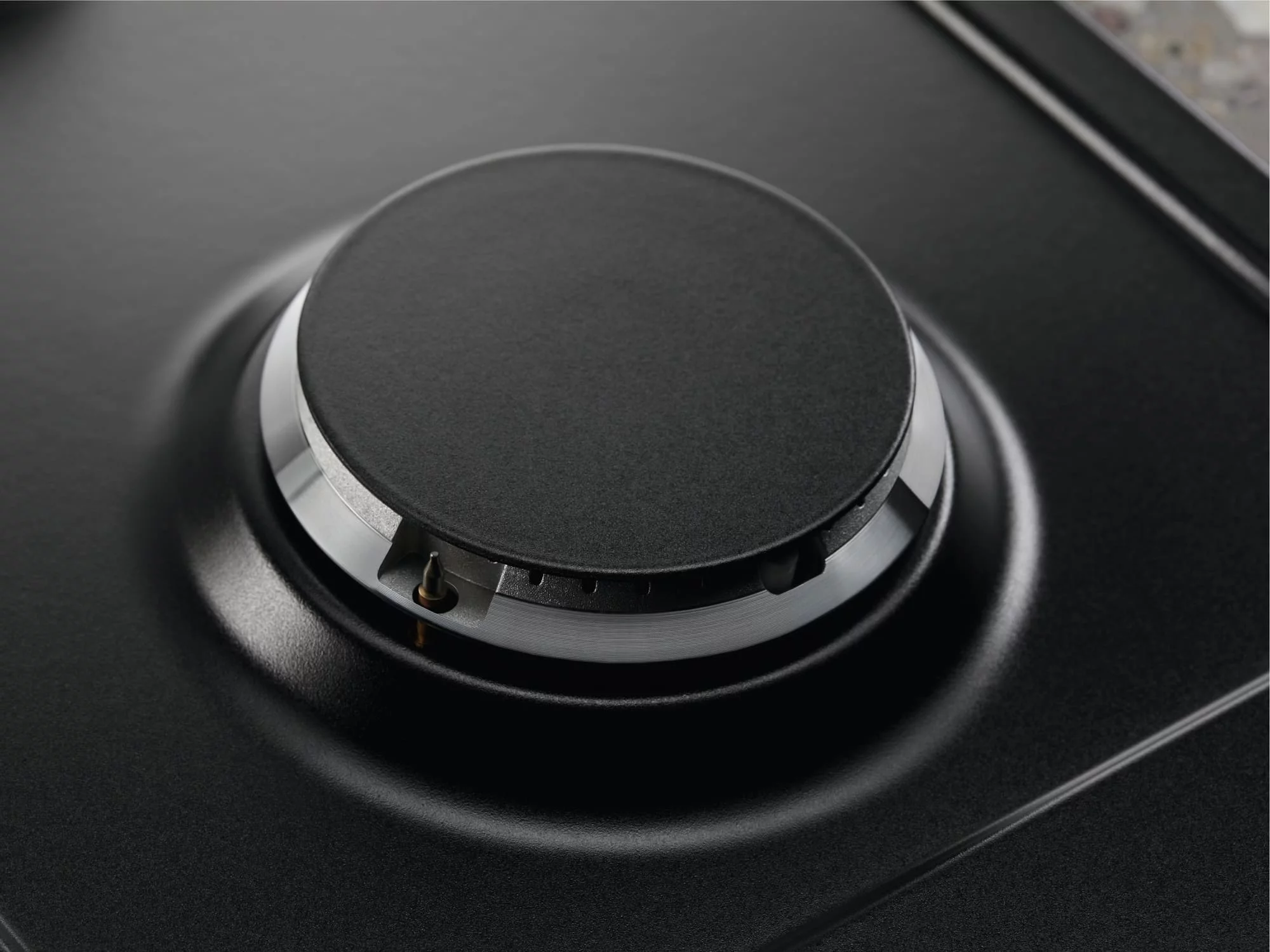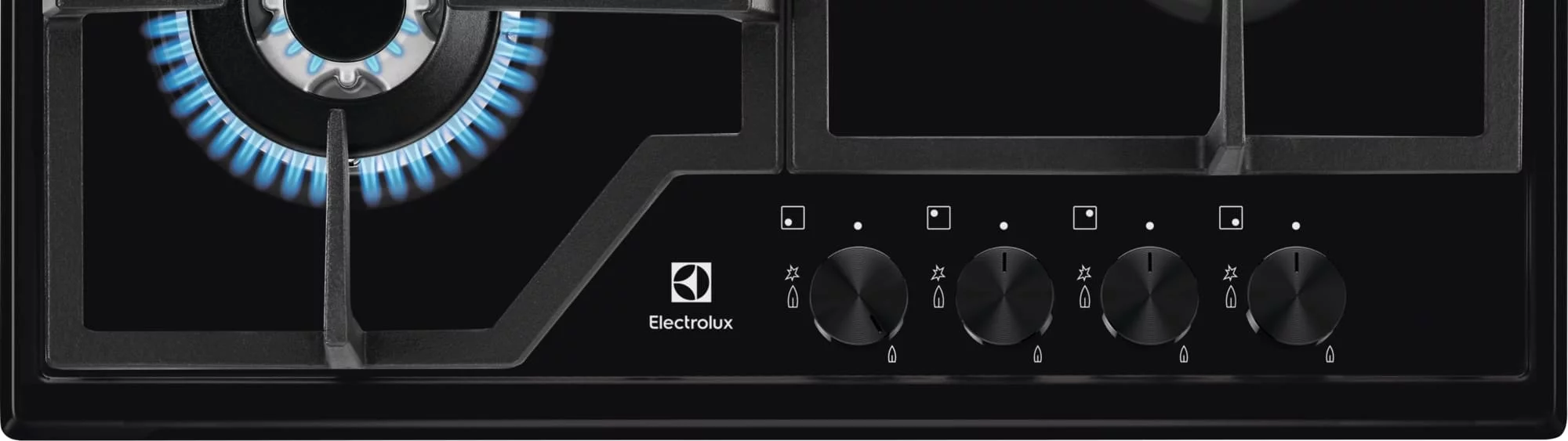 Electrolux KGS6436K — газова варильна поверхня 60 см у чорному кольорі з чавунними ґратками! 4 конфорки (до 4 кВт WOK), електричне підпалювання та газ-контроль — надійний помічник для кулінарії з безпекою та зручністю!