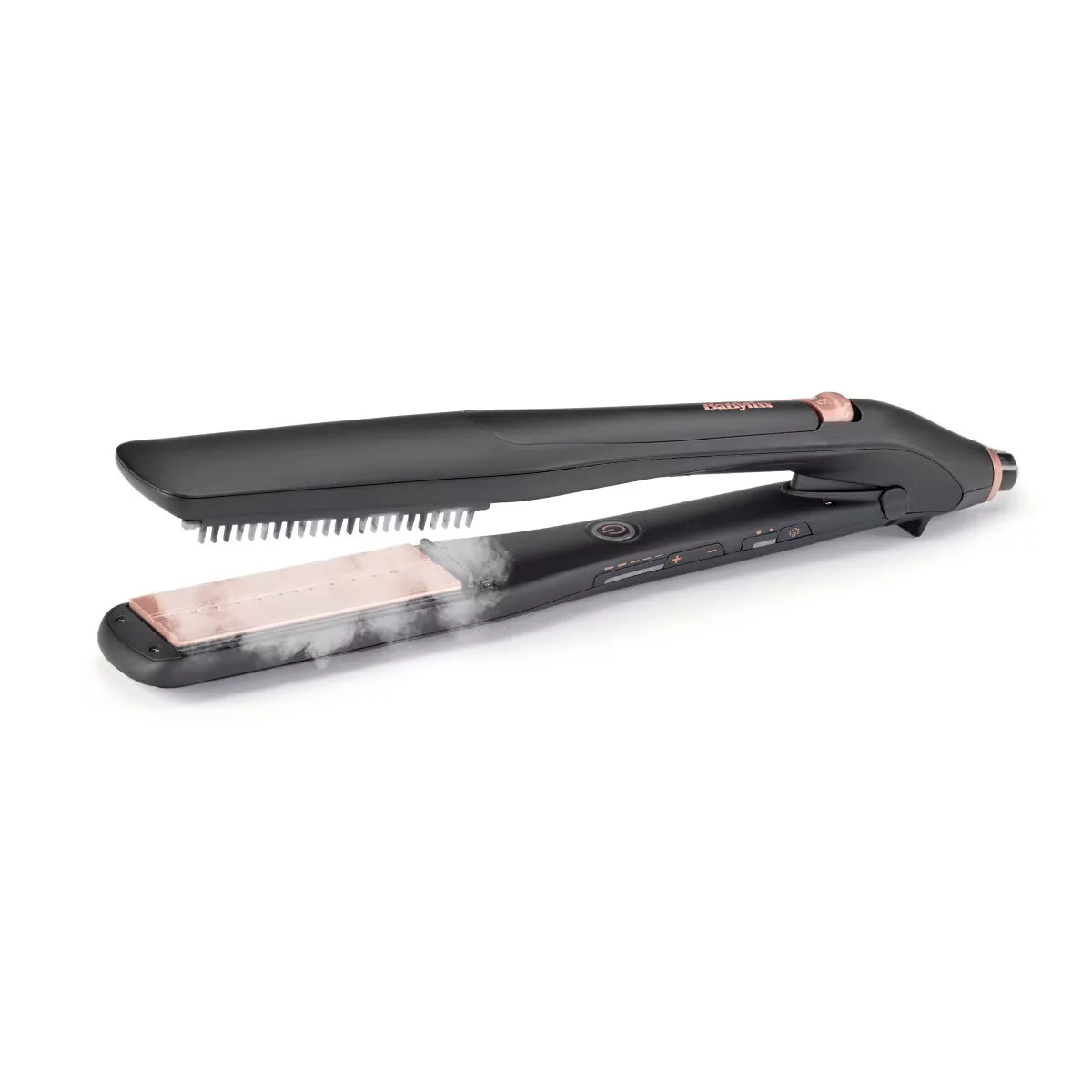 BaByliss Steam Luxe Styler — професійний паровий випрямляч для волосся з потужністю 56 Вт, 5 температурними режимами і широкими керамічними пластинами з технологією Titanium Ceramic. Завдяки функції мікропари забезпечує глибоке зволоження та ефективне вирівнювання волосся без пересушування. Оснащений висувними гребінцями для легкого розчісування, світлодіодною індикацією, кабелем 2,5 м і термокилимком у комплекті. Ідеально підходить для створення гладкої, блискучої зачіски в домашніх умовах.