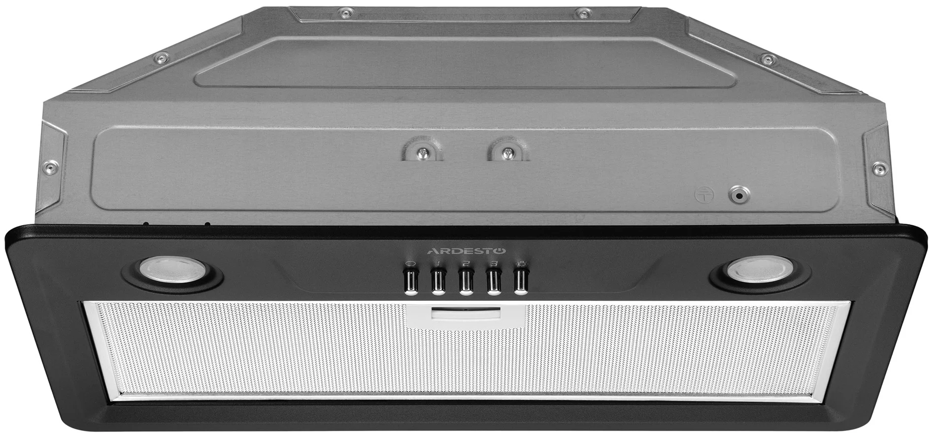 Вбудовувану витяжку ARDESTO призначено для повної інтеграції в кухонний гарнітур. Вимкненою, вона залишається повністю непомітною, а під час експлуатації забезпечує ефективне очищення повітря. Модель – суцільнометалева, що зумовлює міцність і довговічність, до того ж видиму поверхню доповнено чорним оздобленням – стильний контраст зі сріблястим фільтром.