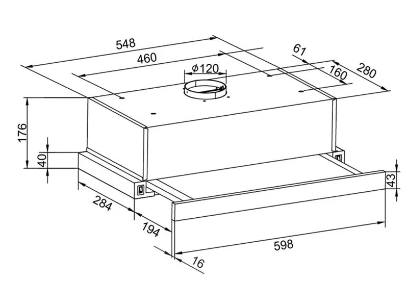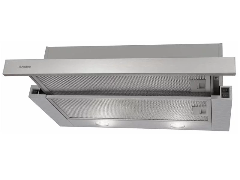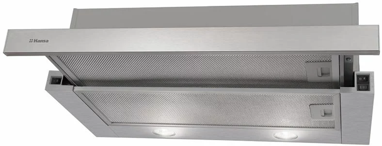 Телескопічна витяжка шириною 60 см з максимальною продуктивністю 242 м³/год. Працює у двох режимах – відведення повітря та рециркуляція. Оснащена трьома швидкостями, кулісним перемикачем і LED-освітленням.