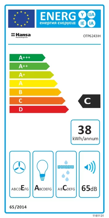 клас захисту від ураження електричним струмом: II, коефіцієнт збільшення часу ƒ , мін. відстань по висоті до варильної поверхні, повітряні заслінки