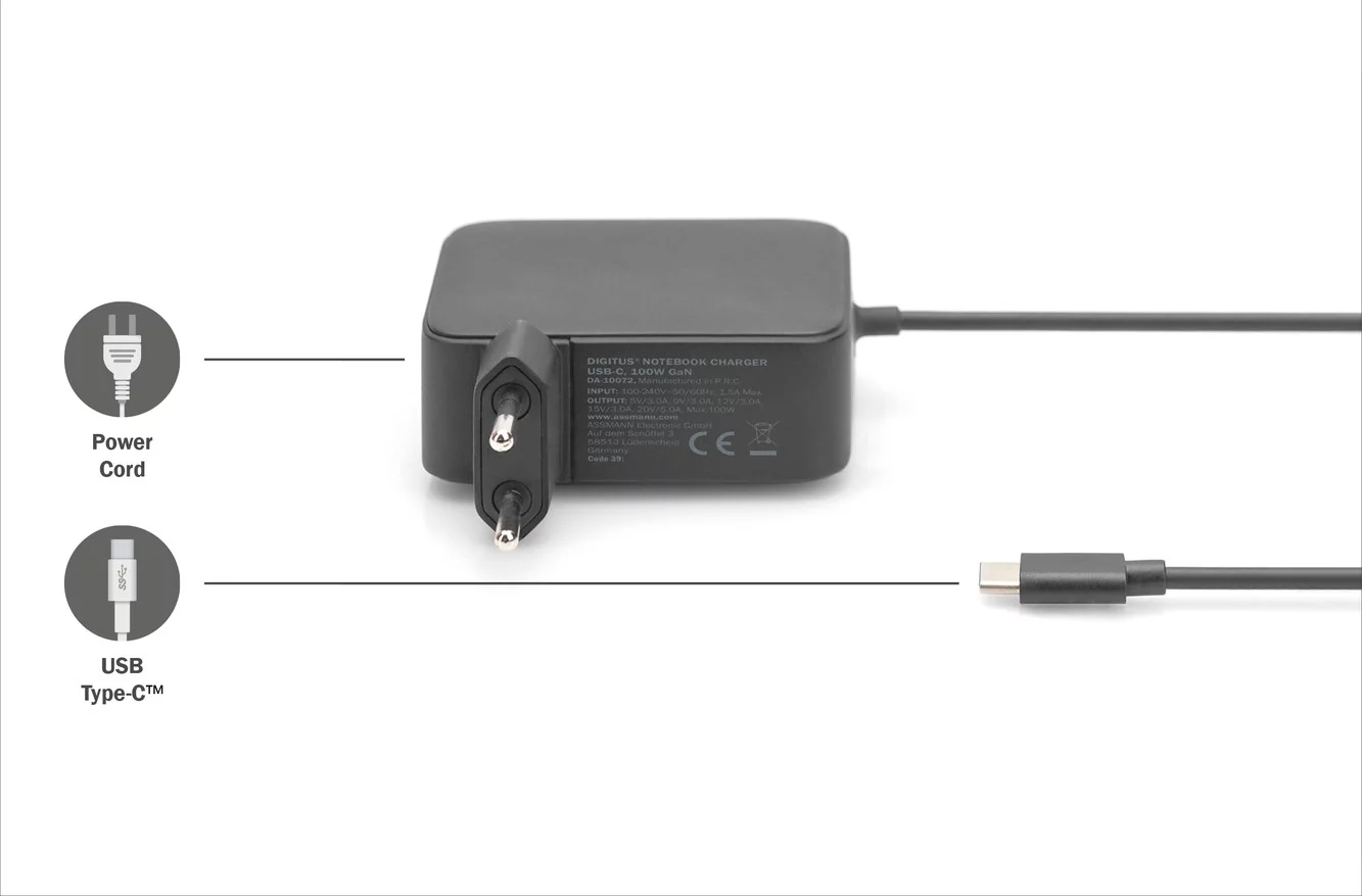 Зарядний пристрій для ноутбука DIGITUS із підключенням USB-C і технологією GaN потужністю 100 Вт — потужний, компактний і легкий. Він сумісний з більшістю моделей ноутбуків і багатьма іншими пристроями USB-C і ідеально підходить як другий блок живлення в офісі, у дорозі чи вдома. Завдяки технології GaN зарядний пристрій є надзвичайно ефективним і заряджає ваші пристрої швидше, ніж звичайні зарядні пристрої, крім того, він оснащений інтелектуальною системою захисту, яка запобігає перегріву, перезарядженню та коротким замиканням, таким чином захищаючи ваші пристрої.